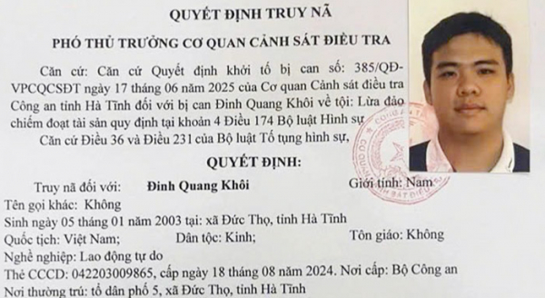 Quyết định truy nã đối với Đinh Quang Khôi.