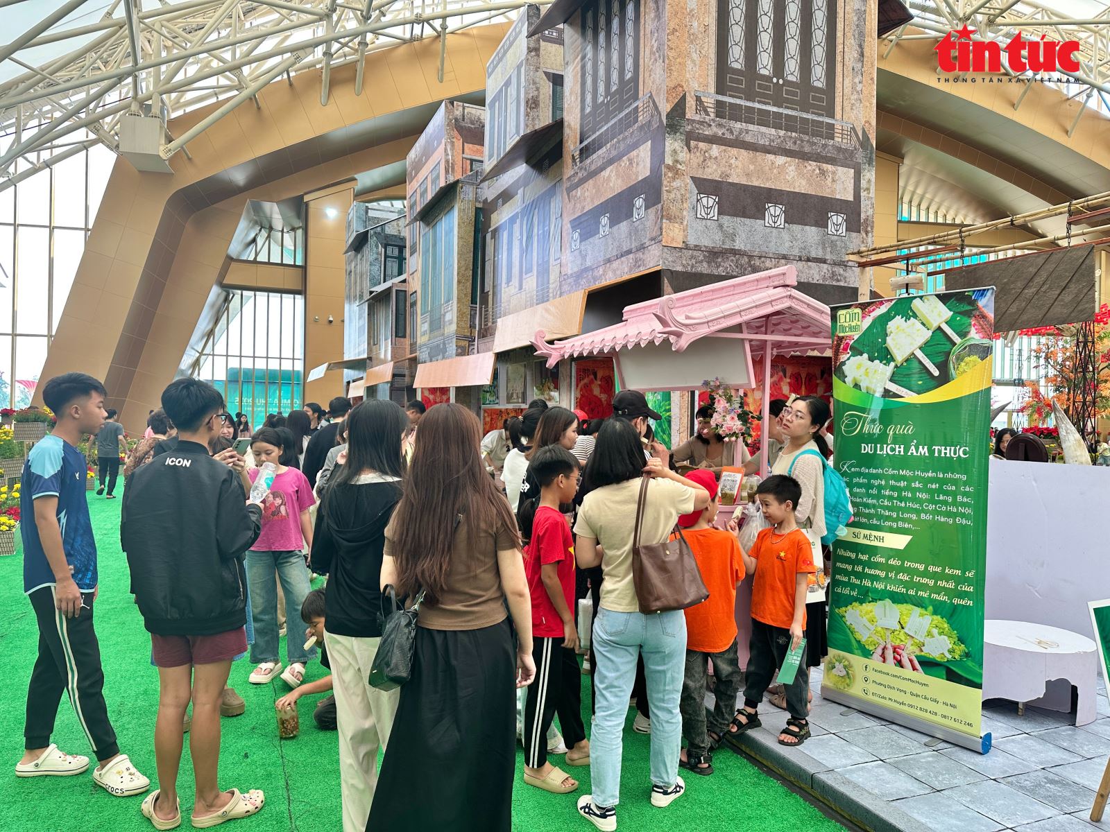 Ở đó, người dân và du khách không chỉ được chiêm ngưỡng một Hà Nội hoài niệm, trầm mặc mà còn cảm nhận được một Thủ đô trẻ trung, sáng tạo, đang vươn mình cùng nhịp sống mới. Bước chân vào “Con đường mùa Thu”, người xem như được lạc vào một hoài niệm của Hà Nội xưa. Con đường lát đá xanh rêu, hàng cây vàng rụng lá, những mái ngói phủ màu thời gian, cột điện kiểu cũ… tất cả được sắp đặt tinh tế, tạo nên một bức tranh mùa thu vừa lãng mạn, vừa gần gũi. Từng góc nhỏ, từng phông nền trang trí được thiết kế cầu kỳ, gợi lại hình ảnh phố phường Hà Nội những năm 80-90, khiến nơi đây trở thành “tọa độ check-in” đầy cảm xúc, nơi mỗi du khách đều muốn ghi lại dấu ấn riêng của mình với mùa thu Thủ đô.