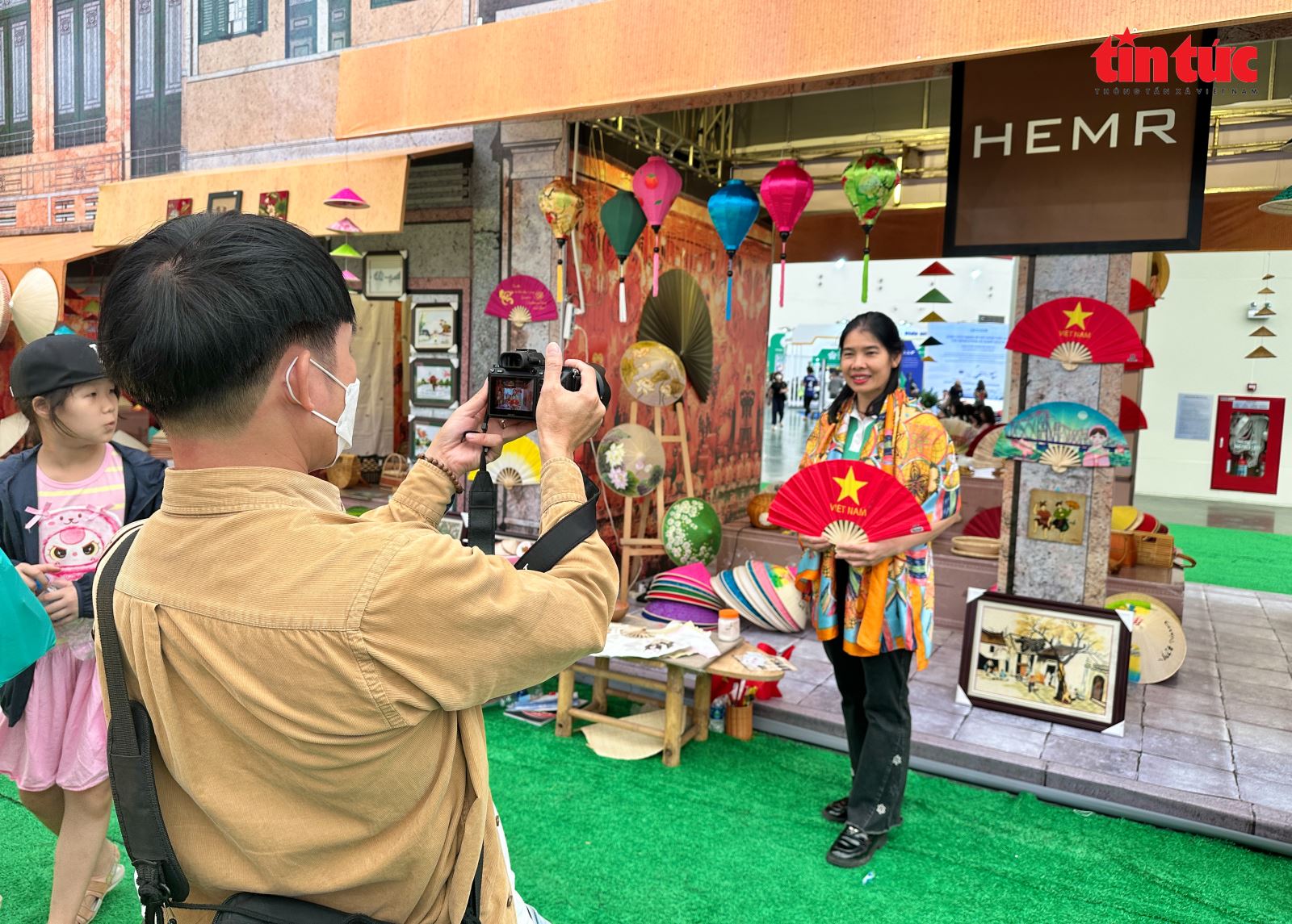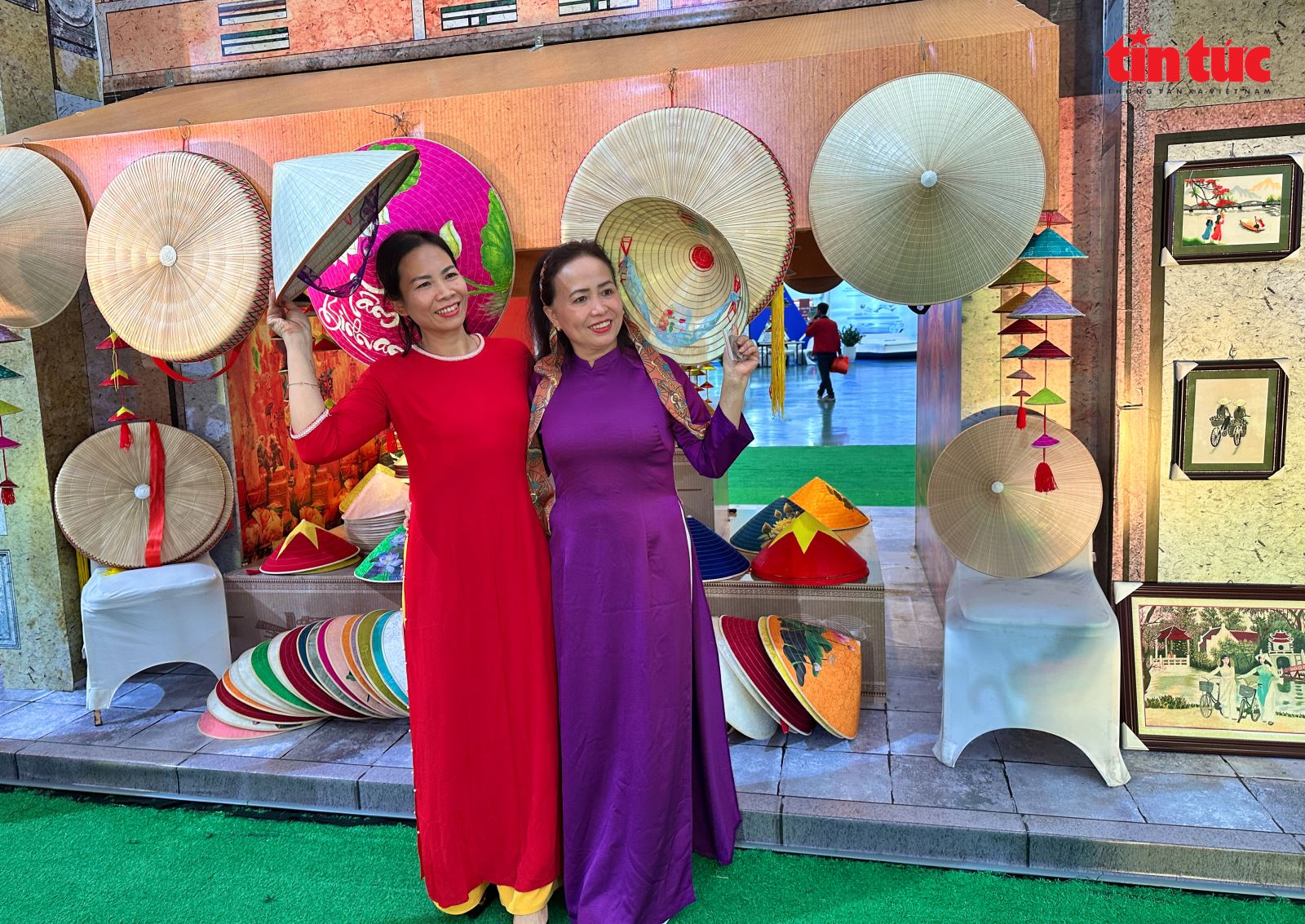 Gian trưng bày những chiếc nón truyền thống trở thành điểm dừng chân hấp dẫn, thu hút du khách ở mọi lứa tuổi.
