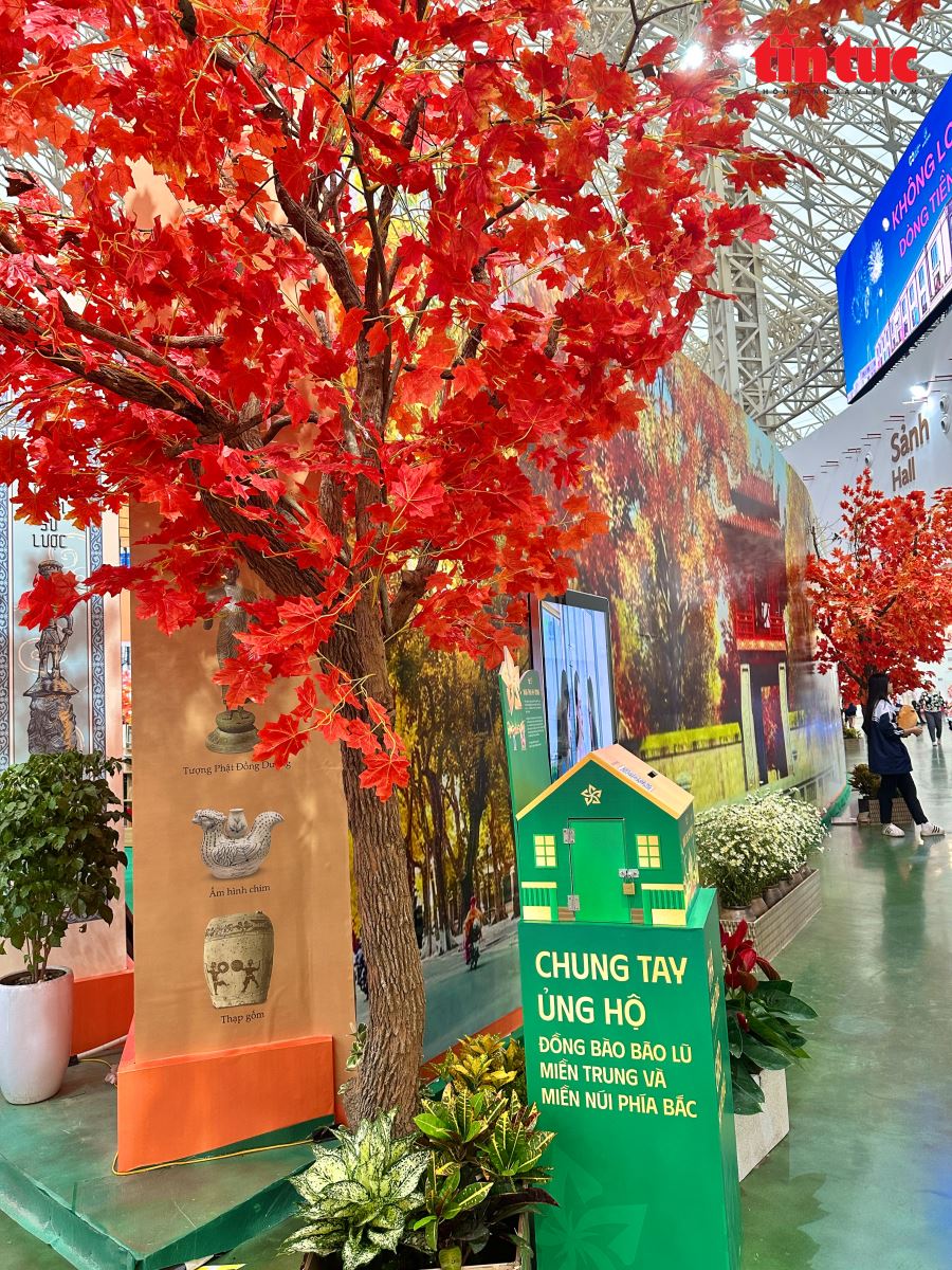 Đi dọc không gian Hội chợ, dễ dàng bắt gặp những mã QR và mô hình gây quỹ “Chung tay ủng hộ đồng bào vùng bão lũ miền Trung và miền núi phía Bắc”, một điểm nhấn ý nghĩa, lan tỏa tinh thần sẻ chia.