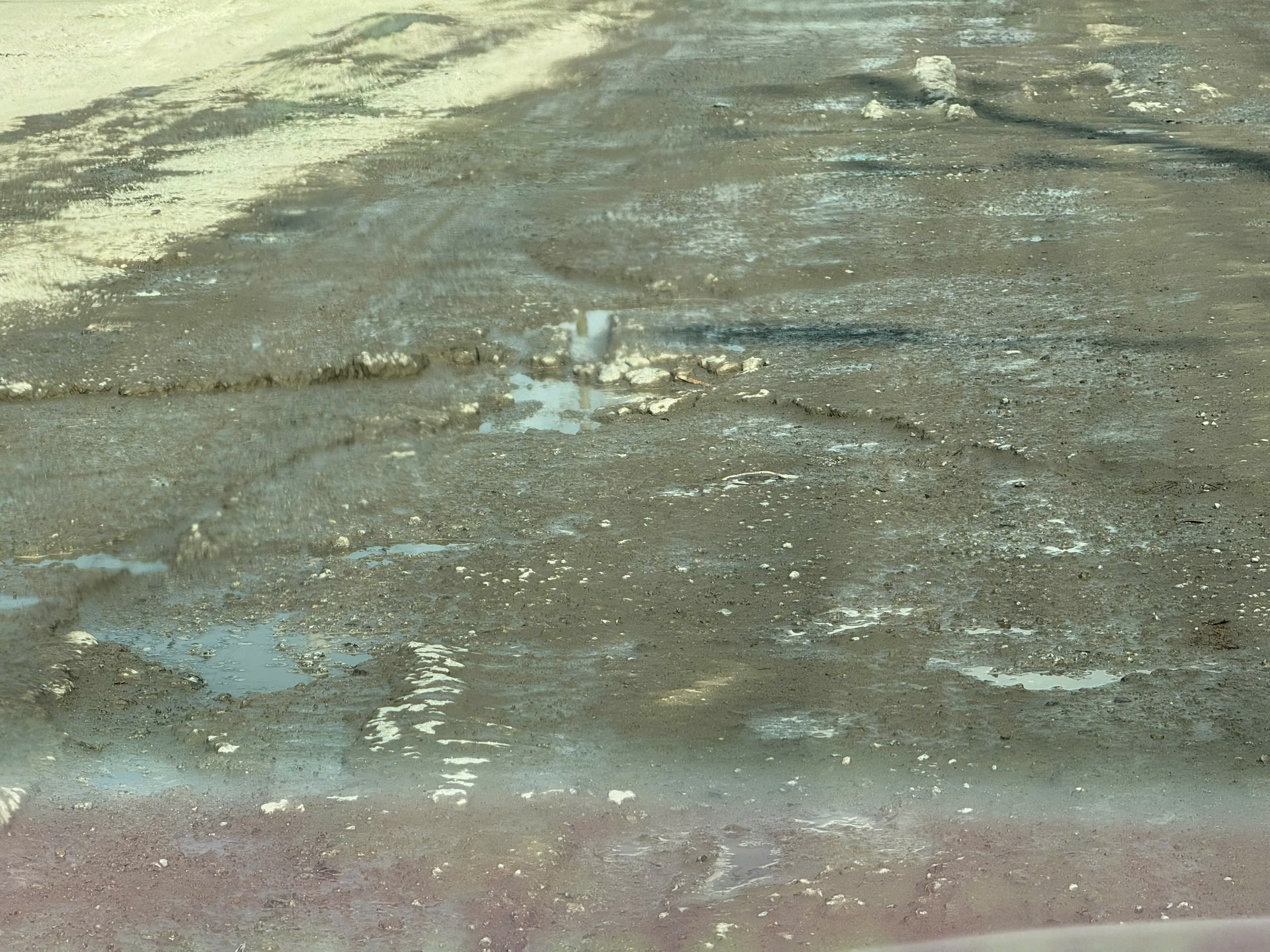 Mặt đường dần bị băm nát sau những giờ oằn mình chịu đựng hàng trăm lượt xe qua lại