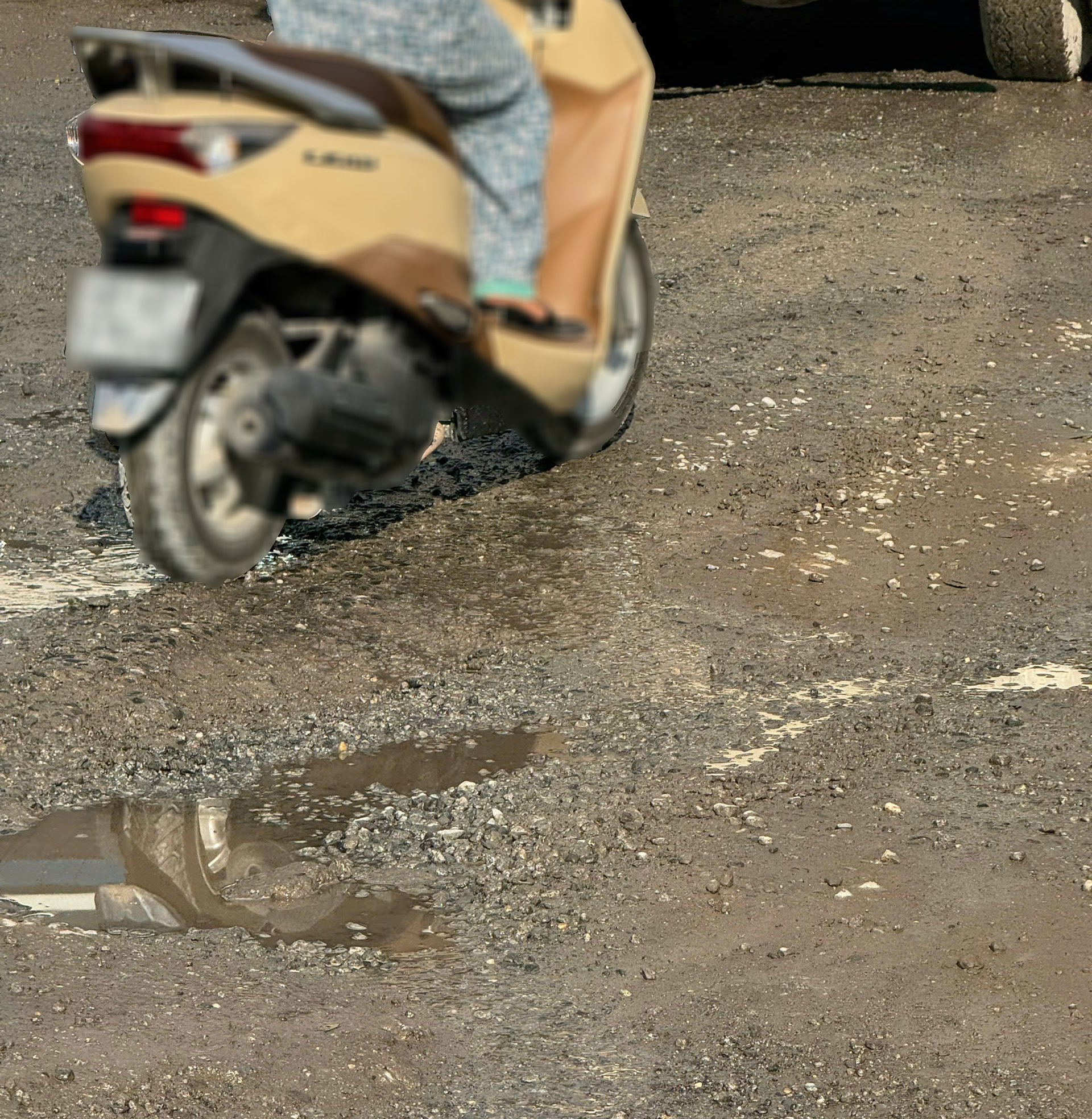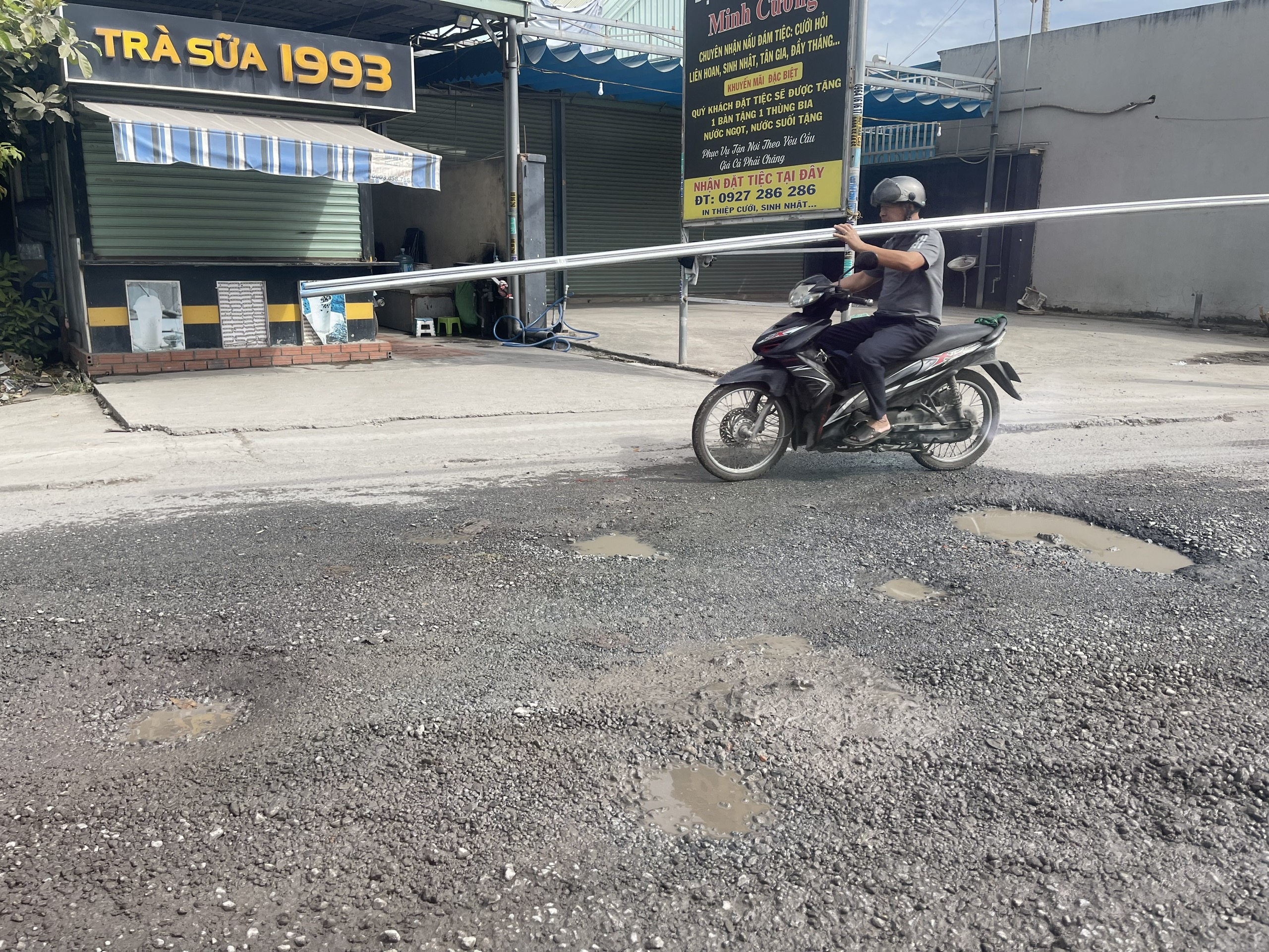 Theo quan sát của PV, nhiều đoạn đường chằng chịt ổ gà, ổ voi, trời nắng thì bụi bặm, trời mưa thì tù đọng các hố nước khiến nhiều phương tiện qua lại rất khó khăn. Những ngày mưa lớn hoặc trời tối, xe hai bánh thường bị té ngã do tránh các hố voi, ổ gà ngập nước.