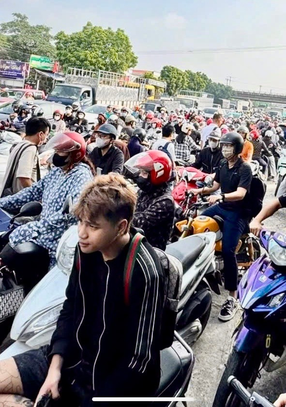 Dòng xe ken đặc khiến không ít công nhân bị trễ giờ làm. Chậm vài phút chấm công, họ có thể bị trừ lương, còn doanh nghiệp cũng khó đảm bảo tiến độ sản xuất.