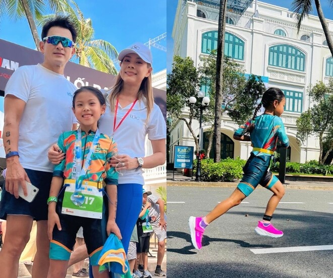 Bé Talia, con gái 7 tuổi của ca sĩ Thanh Thảo, vừa có chuyến trở về Việt Nam để tham gia một cuộc thi thể thao dành cho trẻ em tại Phú Quốc. Cô bé đã hoàn thành các phần thi gồm chạy marathon, đạp xe và bơi lội, thể hiện nền tảng thể chất đáng chú ý.