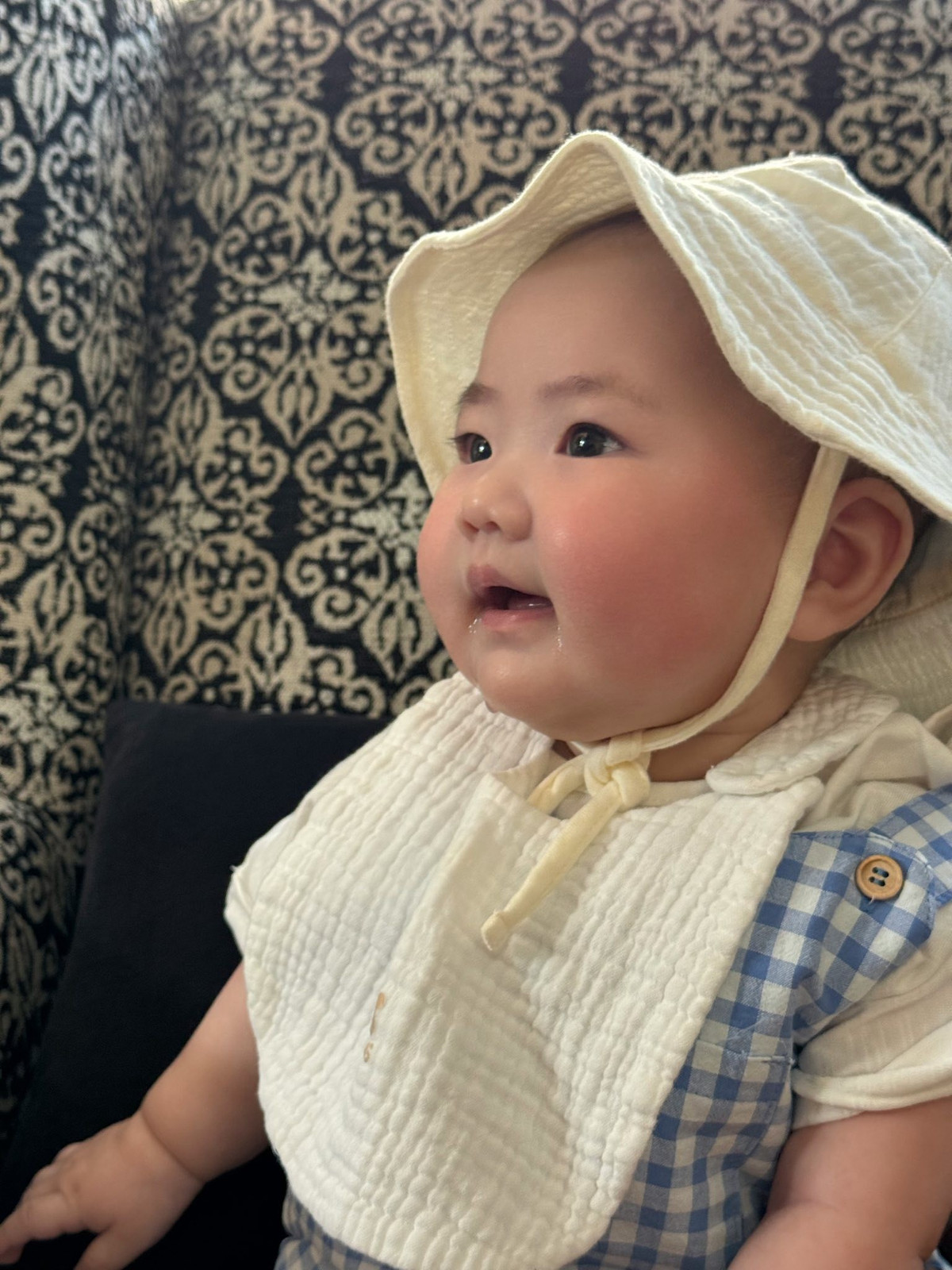 Ở tuổi đầu đời, cô bé sở hữu làn da trắng, đôi mắt to tròn cùng nét mặt dễ thương giống mẹ.