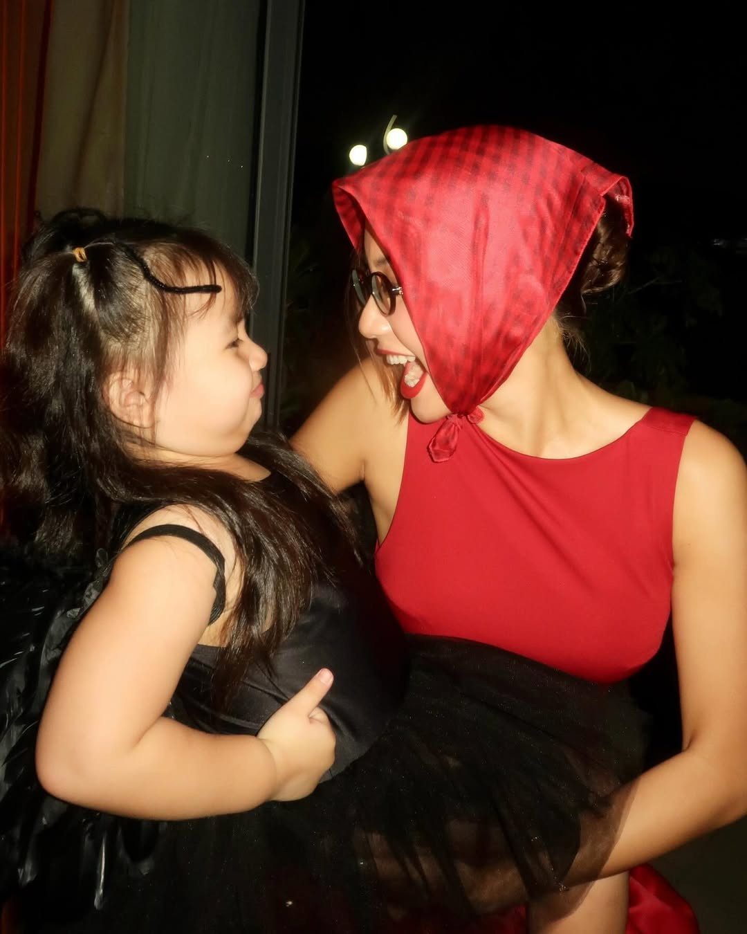 Khi thì cô bé lại tạo dáng điệu đà, chuyên nghiệp trong những bộ ảnh chụp cùng với mẹ, thể hiện sự dạn dĩ trước ống kính.