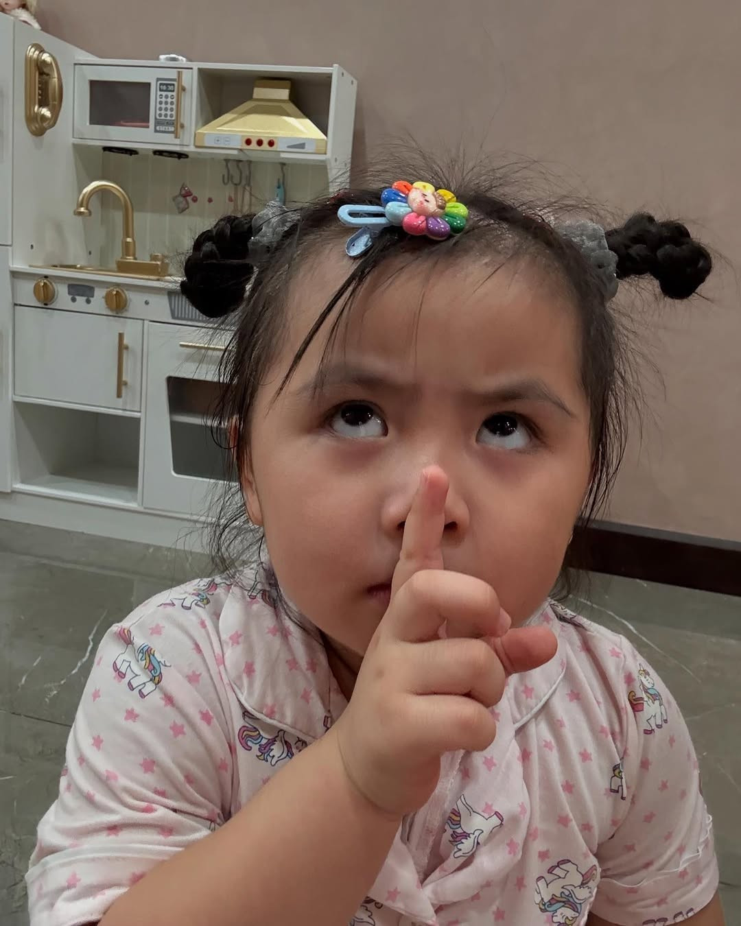 Lúc thì cô bé vô cùng đáng yêu, ngây thơ với đôi má bánh bao và điệu bộ chu môi đặc trung.