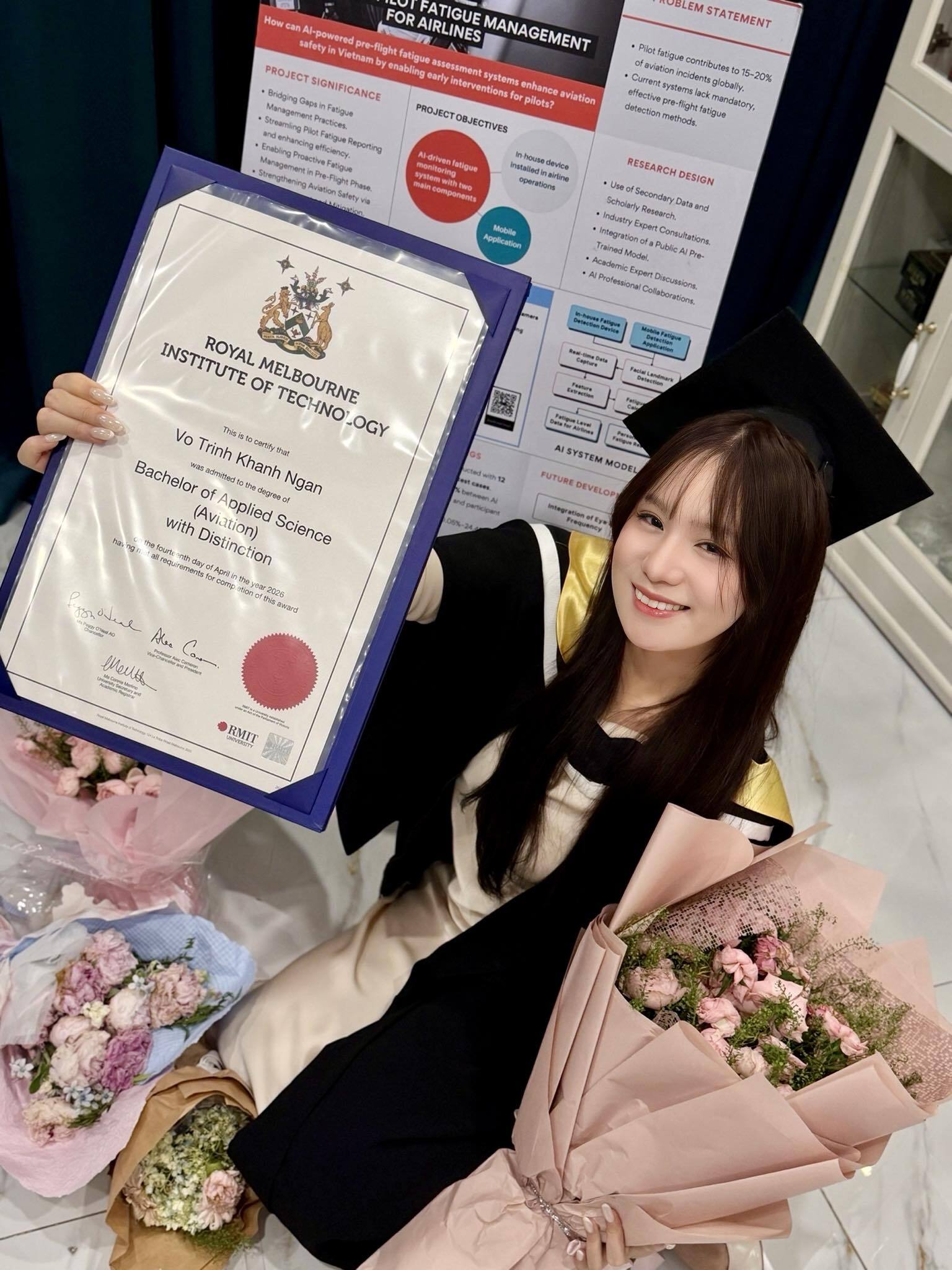 Khánh Ngân hoàn thành chương trình ngành Hàng không tại RMIT University Vietnam với kết quả loại giỏi. Trong suốt quá trình học tập, cô luôn giữ tinh thần nghiêm túc, chủ động tham gia thực tập và các hoạt động ngoại khóa để tích lũy kinh nghiệm