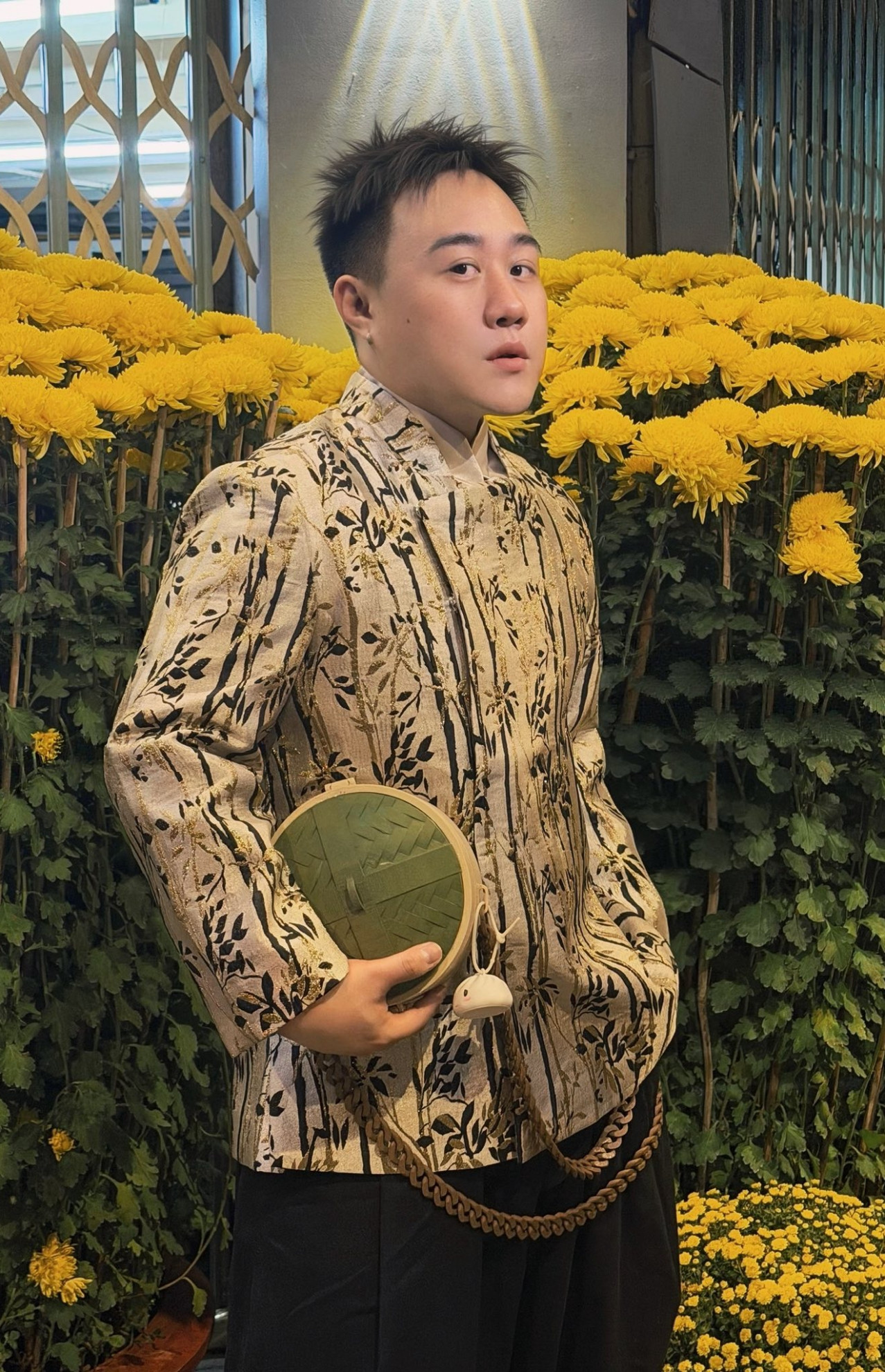 Ca sĩ Trung Quân Idol diện đồ dạo phố Tết ở Sài Gòn.
