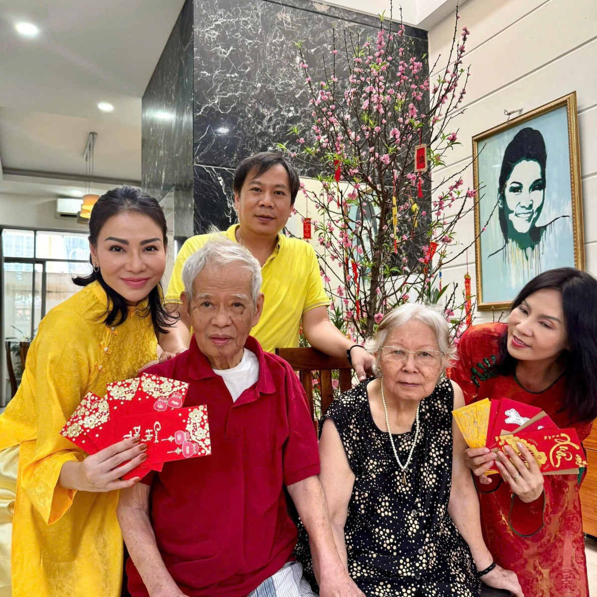 Ba chị em ca sĩ Thu Minh mừng tuổi bố mẹ.