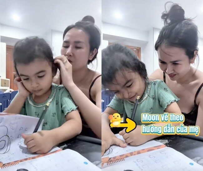 Trong đoạn video, bé Moon cho thấy sự nghiêm túc khi làm quen với việc cầm bút. Dưới sự hướng dẫn tận tình của mẹ, cô bé nắn nót từng nét chữ khá chuẩn chỉnh và vững vàng. Võ Hạ Trâm bày tỏ niềm hạnh phúc và xúc động khi chứng kiến sự trưởng thành của con gái: "Tập cho con nắn nót những nét chữ đầu đời. Mẹ Trâm hạnh phúc lắm".