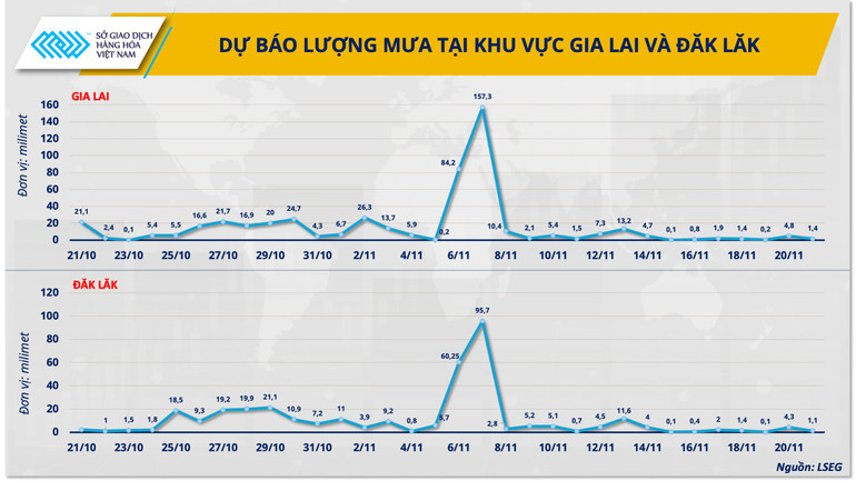 Trước khi xảy ra đợt mưa lũ, sản lượng khả thi nhất của Việt Nam chỉ vào khoảng 27-28 triệu bao, tức chỉ phục hồi nhẹ. Nhưng sau đợt mưa lớn, thiệt hại do rụng quả và thối cây có thể khiến con số này giảm còn 26-27 triệu bao, tùy mức độ ảnh hưởng của bão Kalmaegi.