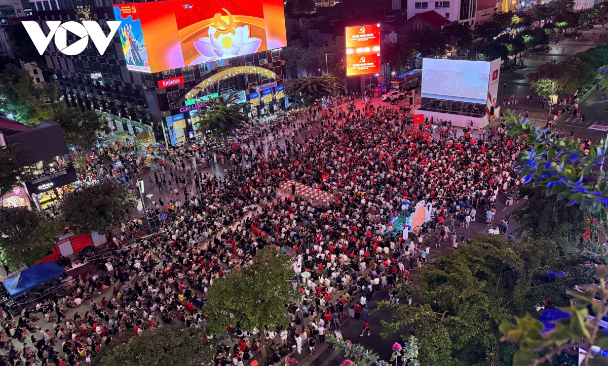 Mặc dù tới 22h30, trận bán kết giải U23 Châu Á 2026 trên đất Arab Saudi giữa đội tuyển U23 Việt Nam và U23 Trung Quốc mới bắt đầu, nhưng tới 20 giờ, phố đi bộ Nguyễn Huệ đã chật kín người với màu sắc đỏ rực.