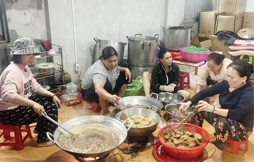 “Đường Thuận An ngập cao lắm hả, không đi được hả. Chọn đi đường cầu Trường Hà hả. Khẩn trương nhé, gấp nhé…”. Liên tục bị ngắt quãng bởi những cuộc trao đổi vội vã giữa các thành viên, xen lẫn trong tiếng mưa nặng hạt, tôi cùng chị Ngọc “lùi” cuộc điện thoại, hẹn sau khi 1.000 suất cơm đã được trao tận tay bệnh nhân và người nhà chăm bệnh. Lúc đó là 3 giờ chiều.