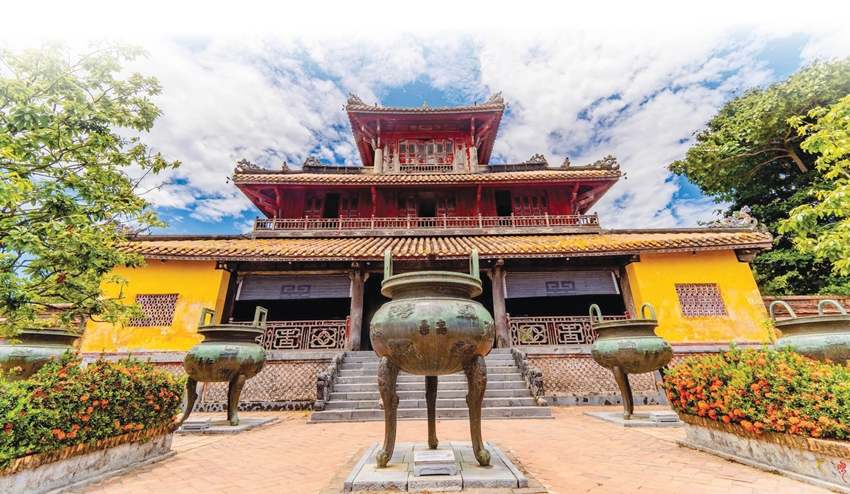 Cao Đỉnh - một trong chín đỉnh đồng tại Hoàng cung Huế. Ảnh: Bảo Minh