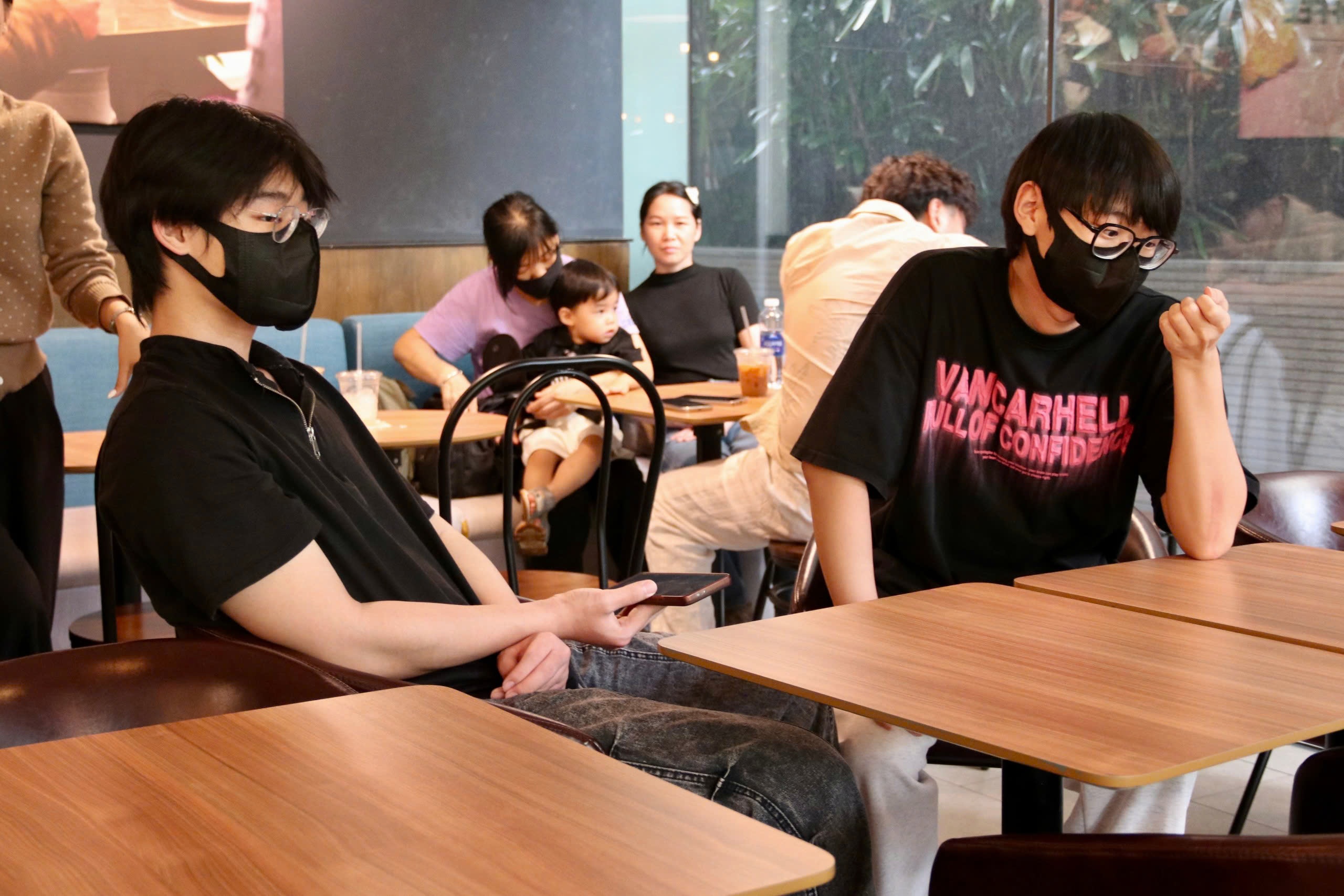 Nhất Dương và Dịch Dương xuất hiện ở khu vực gần Tòa án Nhân dân TP.HCM để chờ đợi phán quyết vụ án. Ảnh: An Khánh.