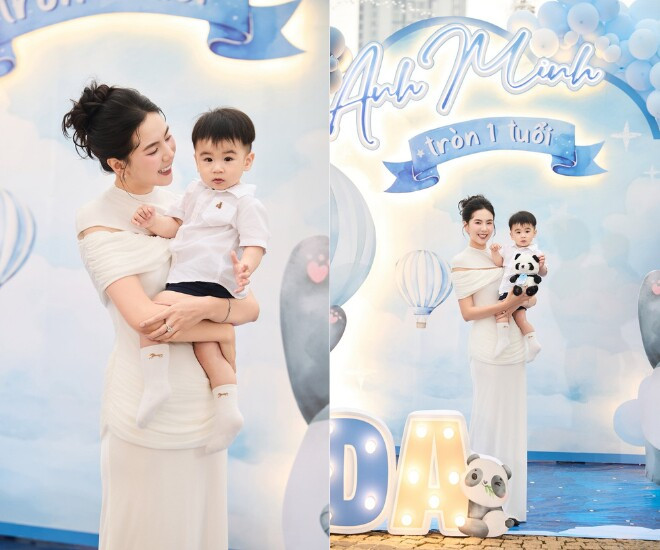 Con trai Mai Ngọc cực đáng yêu, kháu khỉnh trong ngày sinh nhật đầu tiên.