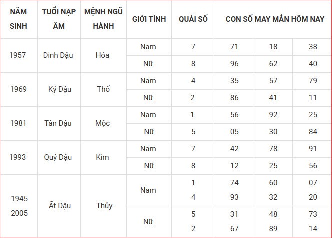 Con số may mắn hôm nay tuổi Dậu: Tuổi Dậu hôm nay nên kiểm soát lời nói để tránh tranh cãi — sự mềm mỏng giúp bạn duy trì ảnh hưởng tốt và ngăn ngừa xung đột không đáng có.