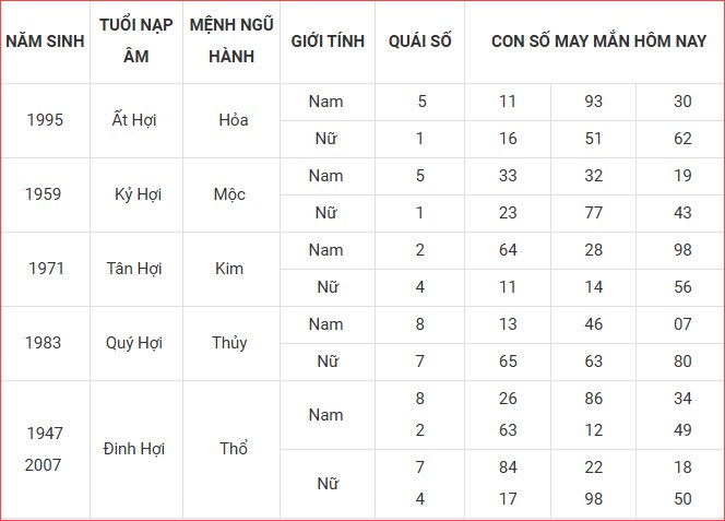 Con số may mắn hôm nay tuổi Hợi: Tuổi Hợi hôm nay nên ưu tiên cân bằng sức khỏe và tinh thần — khi bạn giữ được bình tâm, khả năng đưa ra quyết định sáng suốt sẽ cao hơn.