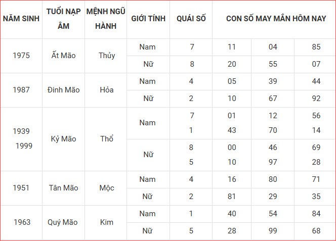 Con số may mắn hôm nay tuổi Mão: Tuổi Mão hôm nay nên kiềm chế lời nói nhạy cảm — sự mềm mỏng và tế nhị trong giao tiếp sẽ giúp bạn giữ hòa khí với mọi người xung quanh.