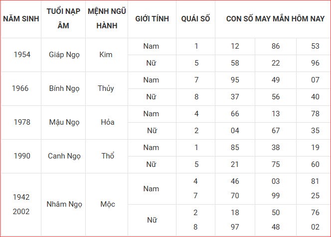 Con số may mắn hôm nay tuổi Ngọ: Tuổi Ngọ hôm nay dễ nhận được hỗ trợ từ bạn bè và đồng nghiệp — nếu bạn tích cực chia sẻ và phối hợp, mọi việc sẽ diễn ra suôn sẻ hơn.