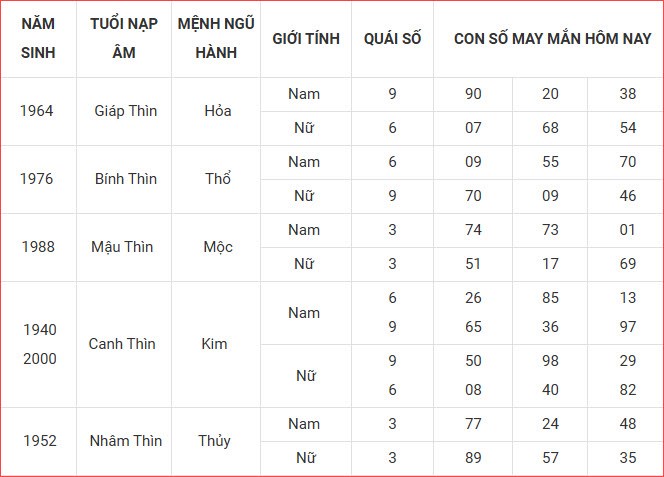 Con số may mắn hôm nay tuổi Thìn: Tuổi Thìn hôm nay có thể được giao nhiệm vụ trọng yếu — nếu bạn thể hiện tâm huyết và năng lực, bạn sẽ được cấp trên nhìn nhận cao hơn.