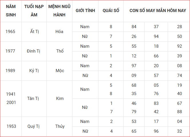 Tuổi Tị hôm nay nên cẩn trọng trong chi tiêu và các quyết định tài chính — tránh đầu tư hoặc mua sắm lớn nếu chưa tính toán kỹ.