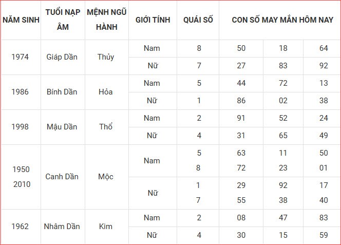 Con số may mắn hôm nay tuổi Dần: Tuổi Dần được quý nhân trợ lực trong công việc chung – nếu bạn hòa hợp và linh hoạt sẽ nhận được kết quả tốt.