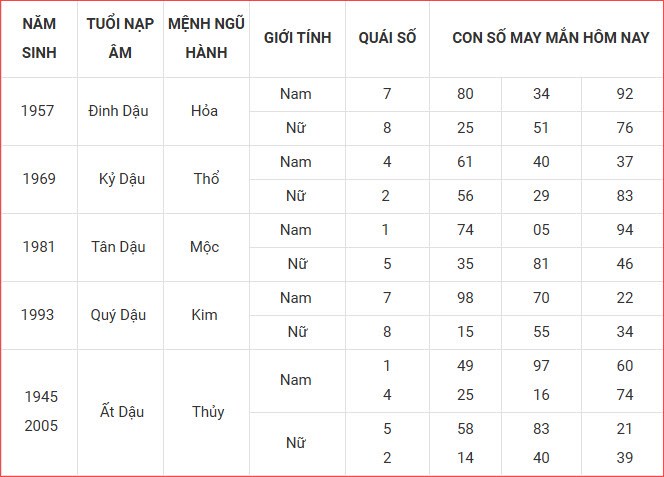 Con số may mắn hôm nay tuổi Dậu: Tuổi Dậu hôm nay cần tiết chế lời nói – tránh tranh luận vô ích để không gây thị phi và giữ được hình ảnh tốt trong mắt mọi người.