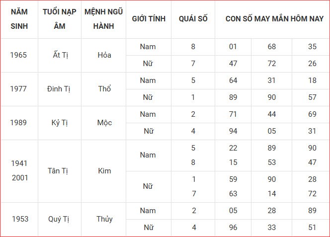 Con số may mắn hôm nay tuổi Tị: Tuổi Tị hôm nay nên thận trọng khi ký kết hợp đồng hoặc giao dịch tài chính – kiểm tra kỹ tất cả điều khoản trước khi ký.
