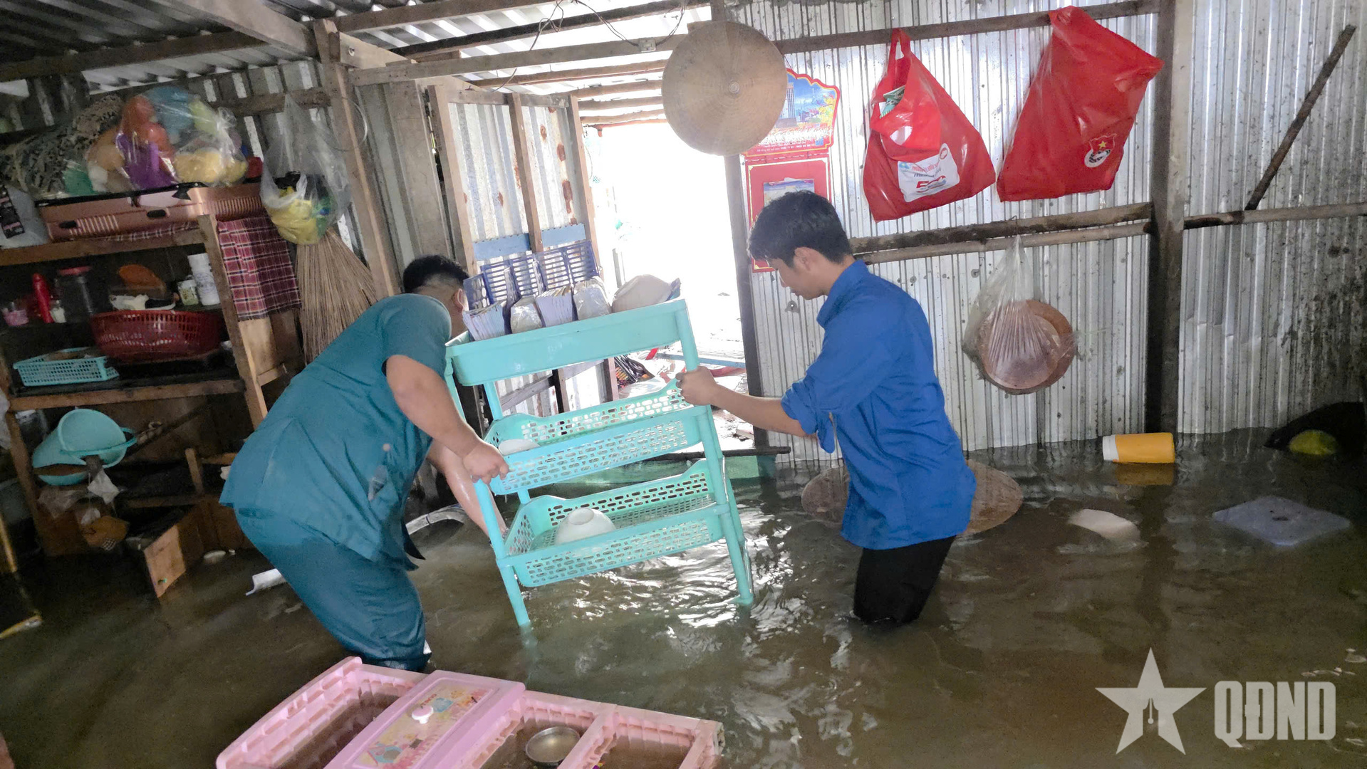 Lực lượng dân quân có mặt tại hiện trường để hỗ trợ người dân di chuyển tài sản.