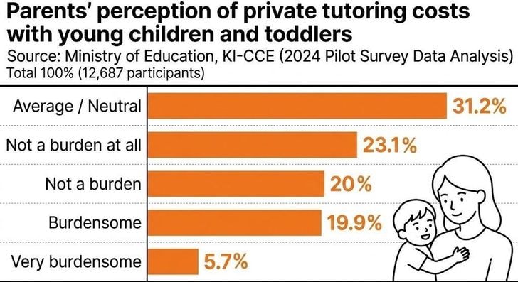 Biểu đồ thể hiện nhận thức của các bậc phụ huynh Hàn Quốc về chi phí dạy kèm tư nhân cho trẻ nhỏ, trong đó phần lớn không coi đây là gánh nặng. Nguồn: Văn phòng Đại biểu Kang Kyung-sook