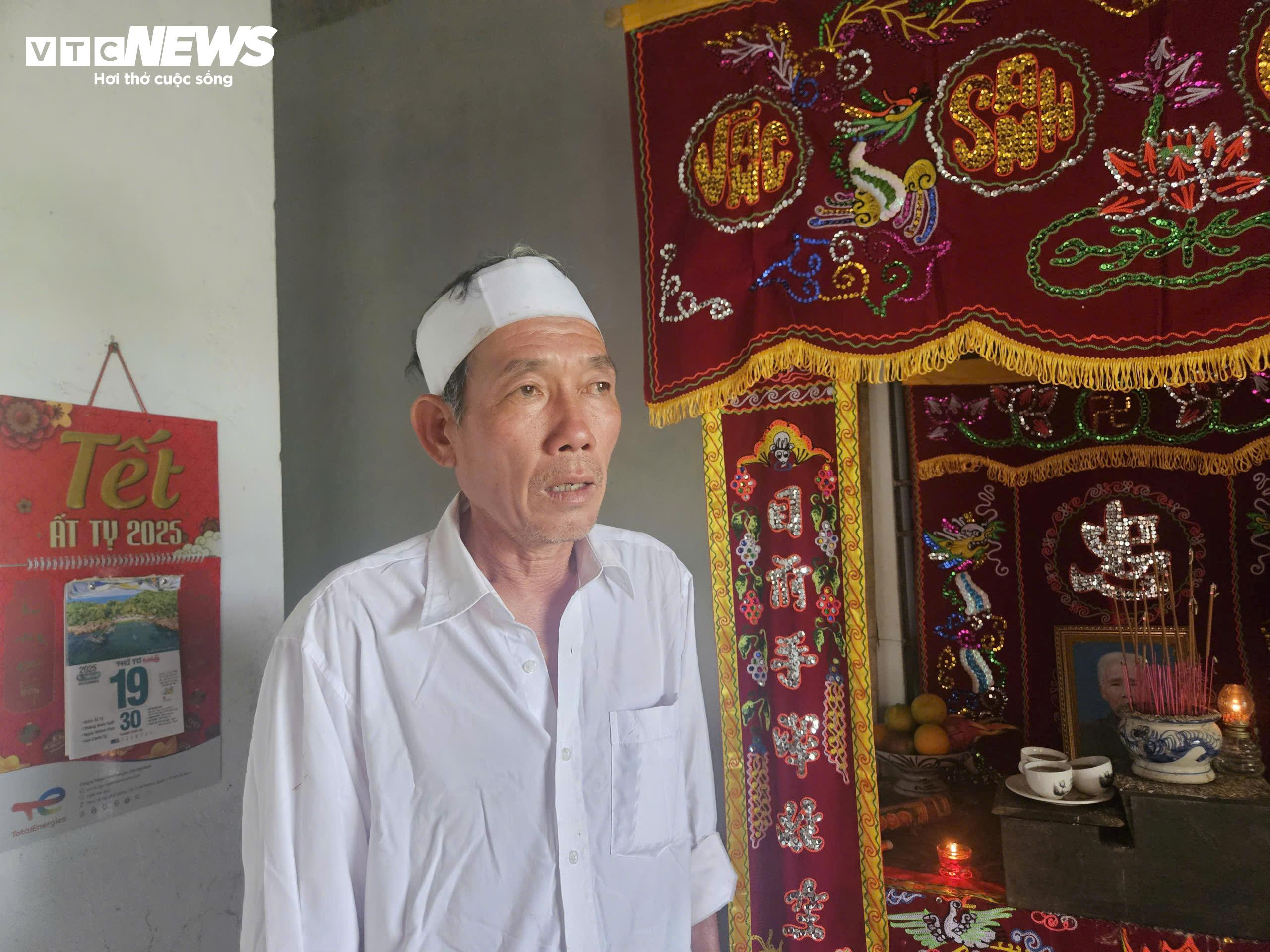 Trên bàn thờ tạm dựng bằng vài tấm gỗ khô, di ảnh cụ Nhiễu vẫn loang lổ vệt bùn, hương khói nghi ngút trong căn nhà người con thứ.