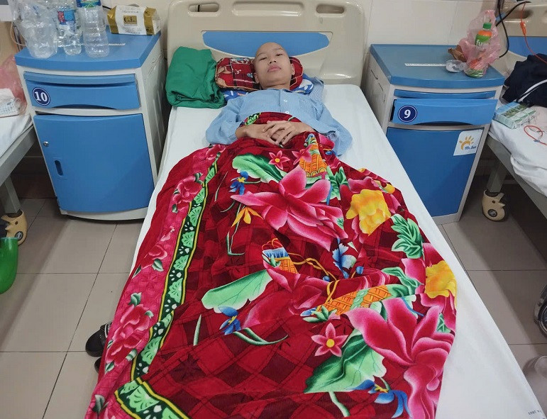 Đến nay, Sơn đã trải qua 5 đợt hóa chất. Trong quá trình điều trị do không ăn được, thiếu máu nên cơ thể Sơn suy kiệt, đi lại khó khăn, phải truyền máu thường xuyên.