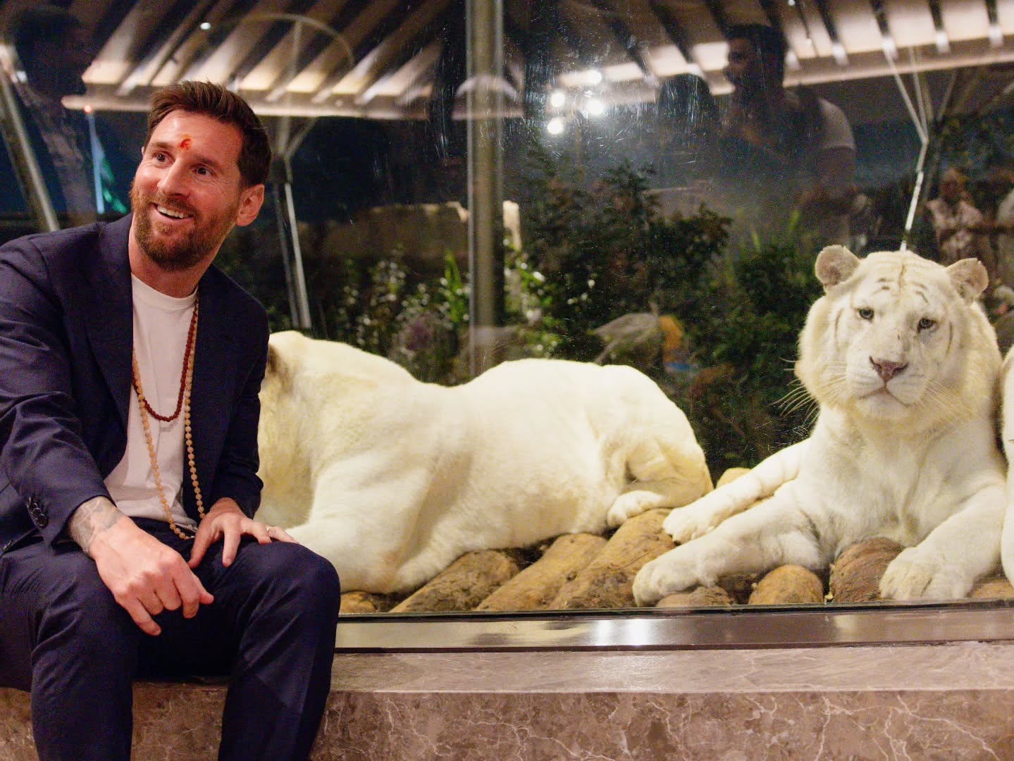 Khép lại chuyến thăm, Anant Ambani và vợ là Radhika Ambani đã đặt tên cho chú sư tử con là “Lionel”, nhằm vinh danh Lionel Messi. Chia sẻ về trải nghiệm tại Vantara, Messi bày tỏ sự ngưỡng mộ trước những nỗ lực cứu hộ, chăm sóc và phục hồi động vật tại đây. Ảnh: @asiannewshub/IG.