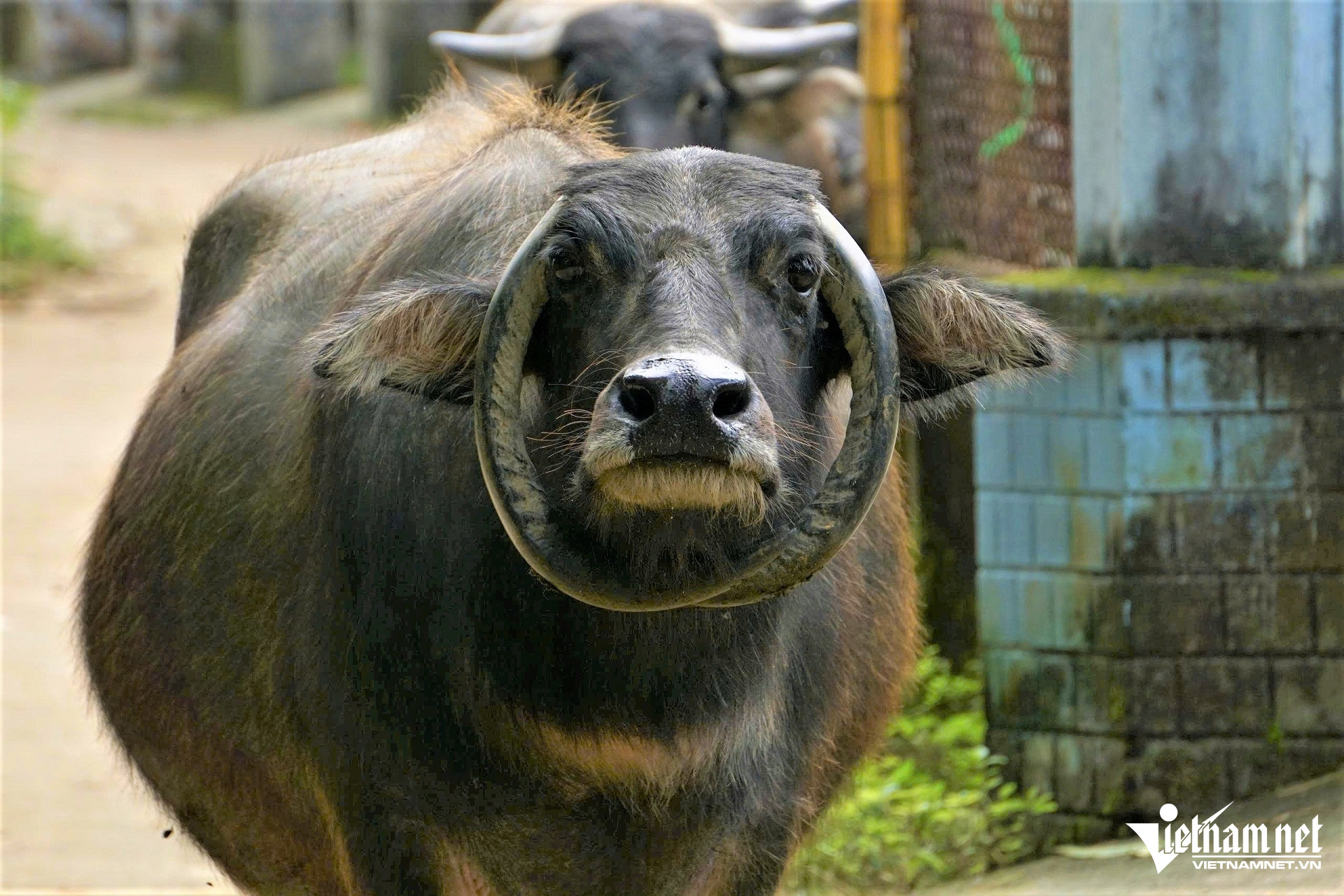 Cặp sừng cong ngược, khép tròn quanh đầu con trâu như một chiếc “vòng cổ” rất lạ