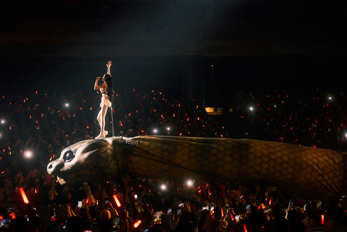 Câu hỏi ấy không phải vô căn cứ, trong bối cảnh tour diễn dự kiến khởi động tại Thâm Quyến vào tháng 3/2026 với hàng loạt điểm dừng đã sớm kín chỗ. Vấn đề nằm ở chỗ, những yếu tố làm nên “thương hiệu” sân khấu tại Đài Bắc, con trăn khổng lồ mang hàm ý dục vọng, bối cảnh u tối như “thanh kiếm treo”, hay hệ thống động vật cơ khí tượng trưng cho “bảy tội lỗi chết người” gồm bò tót, lợn vàng, ngựa có cánh, đều là những hình ảnh dễ gây tranh cãi trong quá trình thẩm định nội dung.