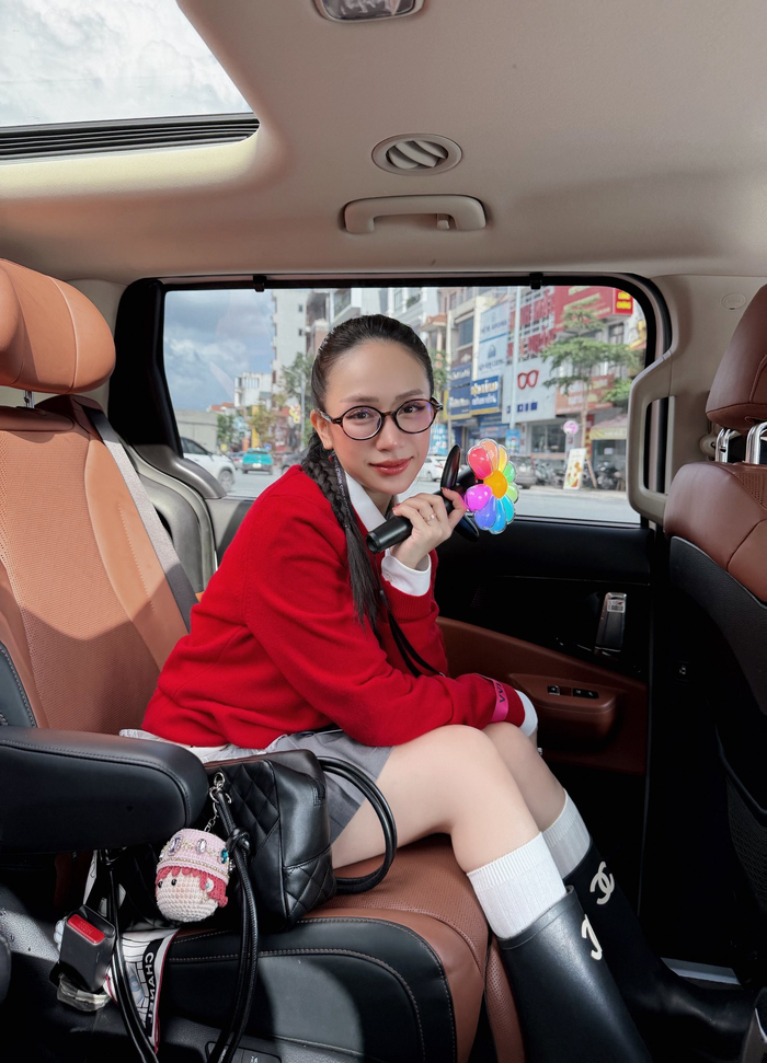 Joyce Phạm - ái nữ nhà đại gia Minh Nhựa khoe khoảnh khắc check-in trên xe cùng lightstick biểu tượng hoa cúc đặc trưng của G-Dragon.