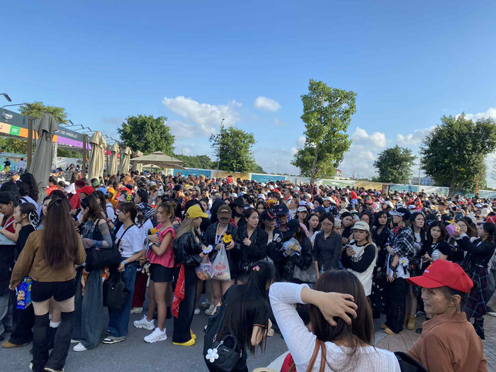 Dòng người xếp hàng đổi vé, vật phẩm lưu niệm và tiến về sân khấu chính (Ảnh: Fanpage VKR News)