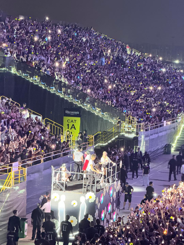 22h30: G-Dragon ngồi trên xe hoa cúc, di chuyển khắp các khu vực trong sân khấu để tặng quà cho các fan Việt