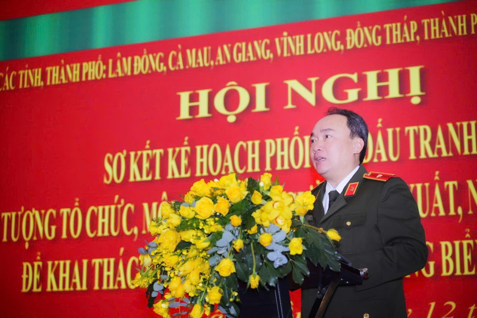 Thiếu tướng Trương Minh Đương – Giám đốc Công an tỉnh phát biểu tại Hội nghị