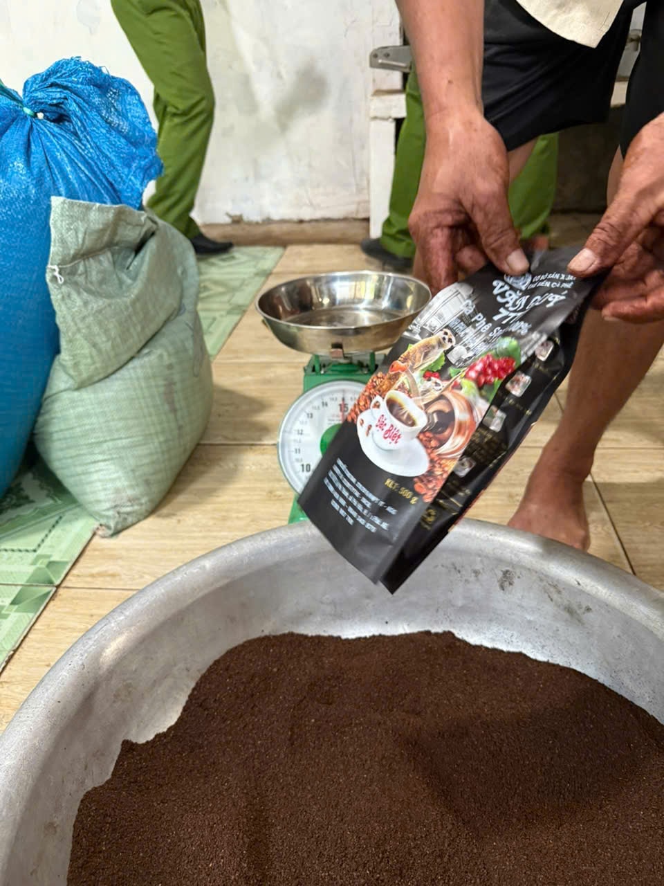 Nhận thấy thị trường thích cà phê giá rẻ nên từ khoảng đầu năm 2024 đến nay, các đối tượng bắt đầu sản xuất chế biến cà phê giả. Để thực hiện hành vi này, các đối tượng mua nguyên liệu là đậu nành, bắp đã rang sẵn có tẩm ướp hóa chất là hương, mùi… tạo mùi cà phê rồi bán ra thị trường với giá từ 80.000đồng - 100.000đồng/kg.