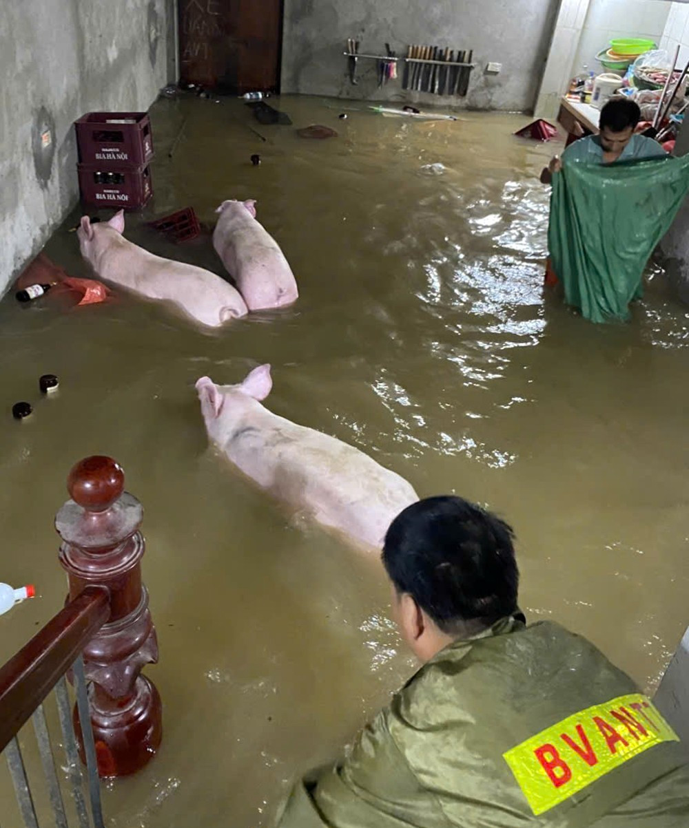 Tại xã Đồng Kỳ (Bắc Ninh), sáng nay (7/10), nước lũ ngập sâu ở khu vực suối Dọc khiến gia đình anh Vũ Đức Thọ (sinh năm 1983) cùng vợ là chị Lý Thị Năm (sinh năm 1987), mẹ già là bà Lê Thị Ký (sinh năm 1949) và con nhỏ 10 tuổi bị cô lập. Lực lượng Công an xã Đồng Kỳ (tỉnh Bắc Ninh) ngay sau đó khẩn trương triển khai lực lượng và phương tiện đến cứu.