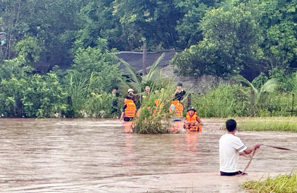 Khoảng 6h30 sáng 7/10, Công an xã Đồng Kỳ đã trực khẩn trương triển khai lực lượng, phương tiện đến cứu an toàn 5 người trong một gia đình ở thôn Suối Dọc, xã Đồng Kỳ đang bị lũ dữ cô lập.