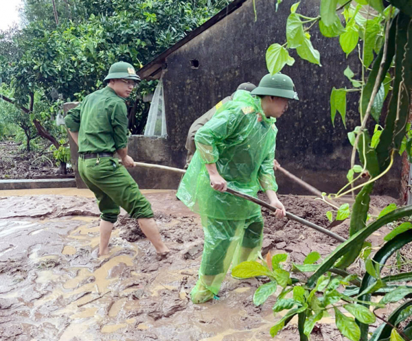 Công an xã Bắc Lũng huy đội ngũ lực lượng hỗ trợ nhân dân khắc phục sạt lở do mưa bão.
