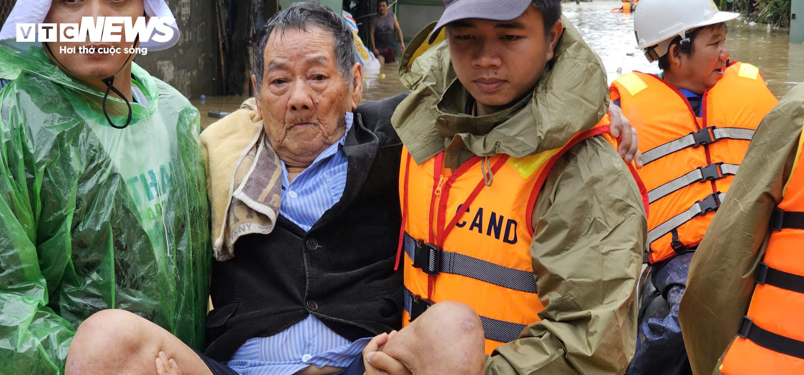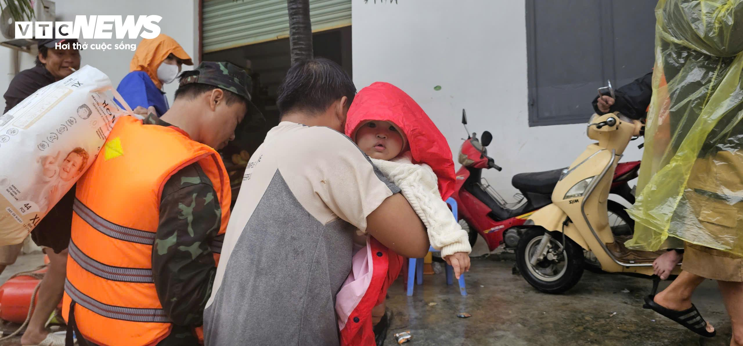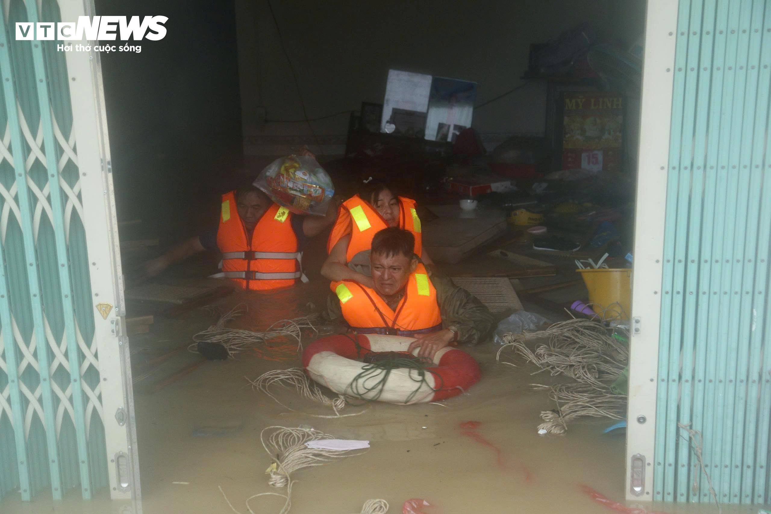 Nước dâng ngập nhà, lực lượng cứu hộ di chuyển người dân, nhất là nhà có trẻ em, người già đến nơi an toàn.