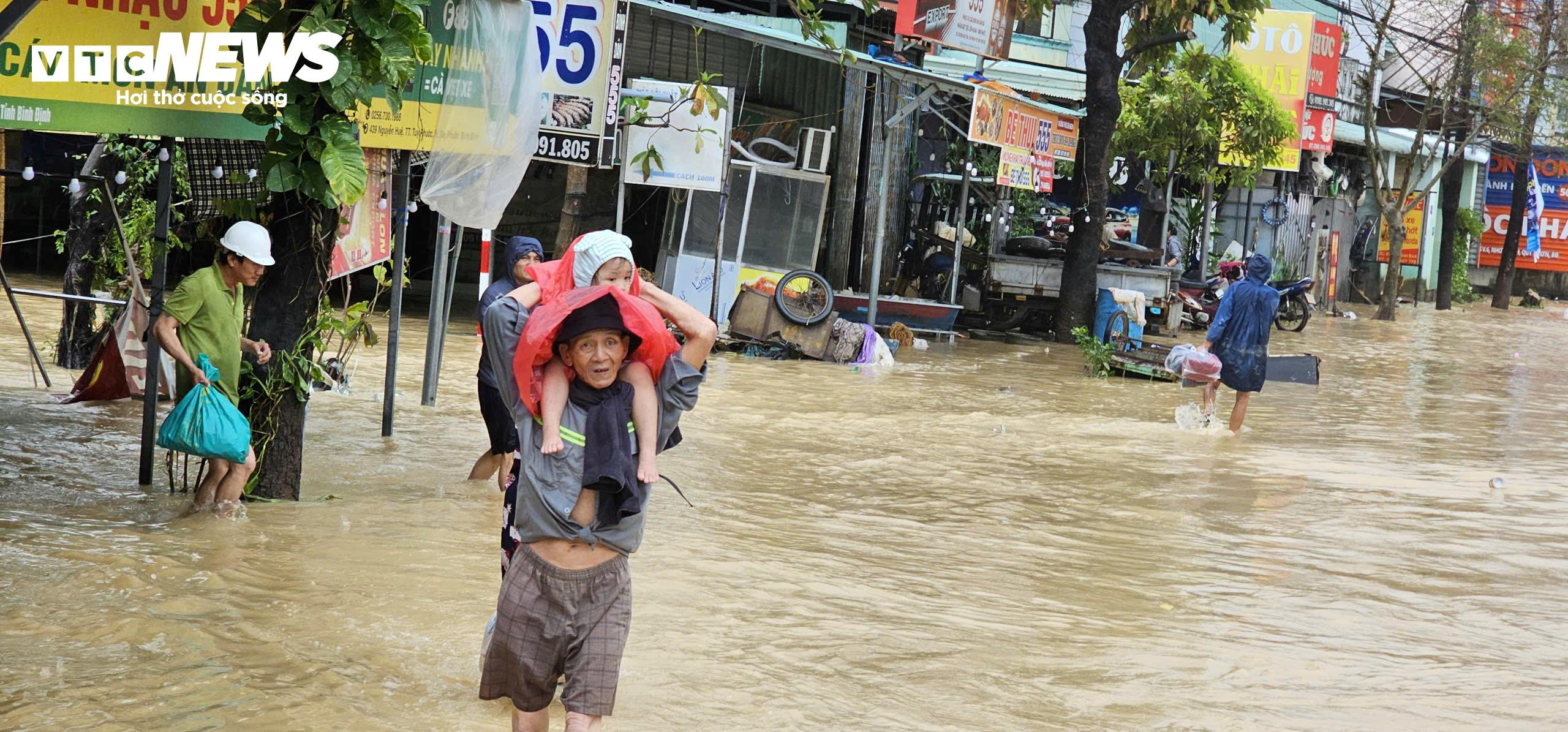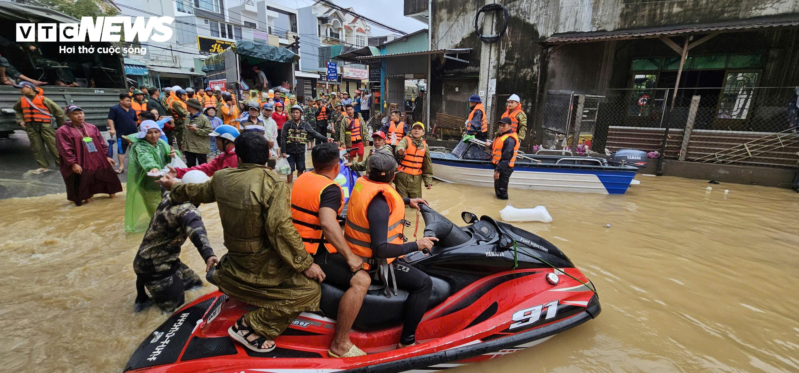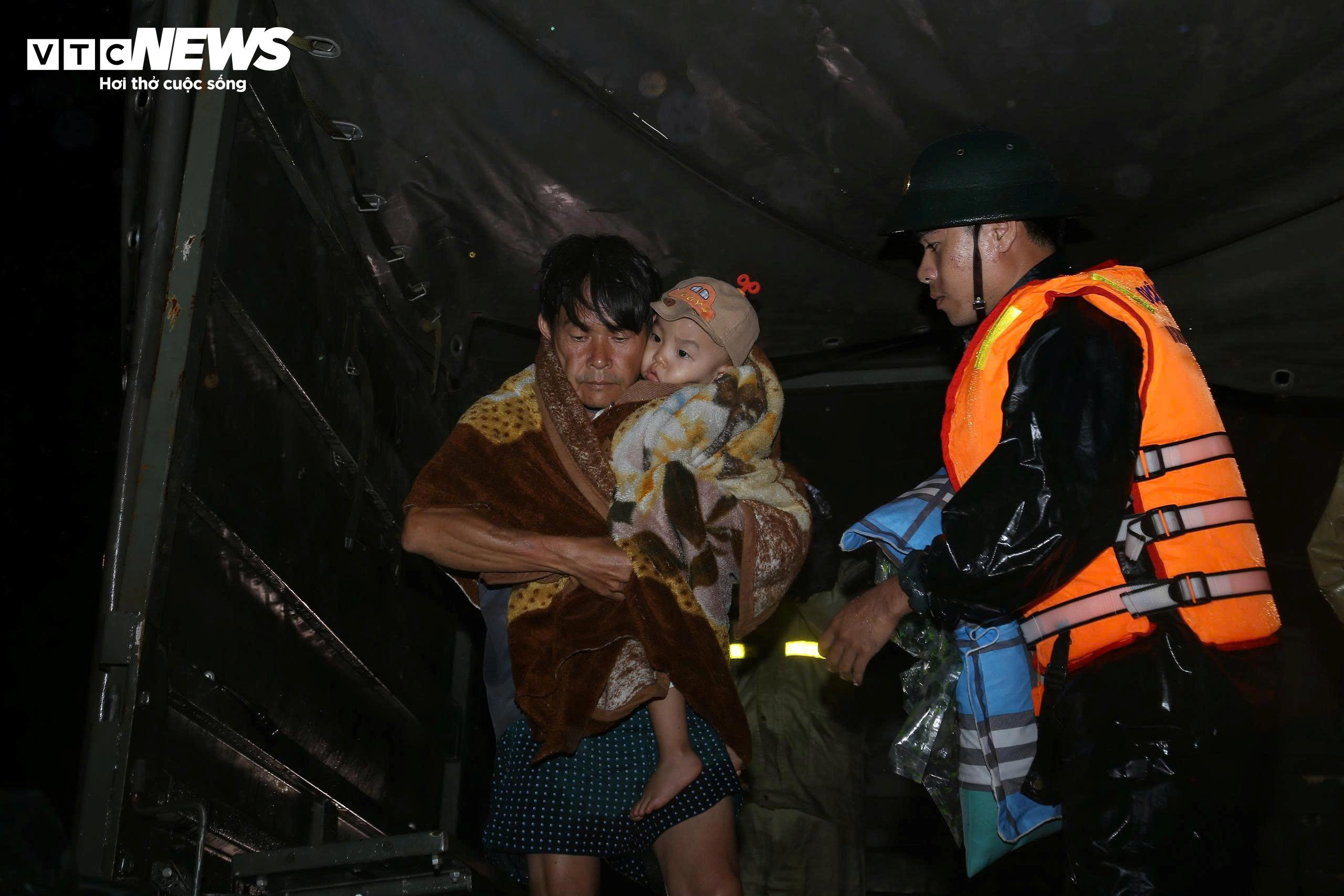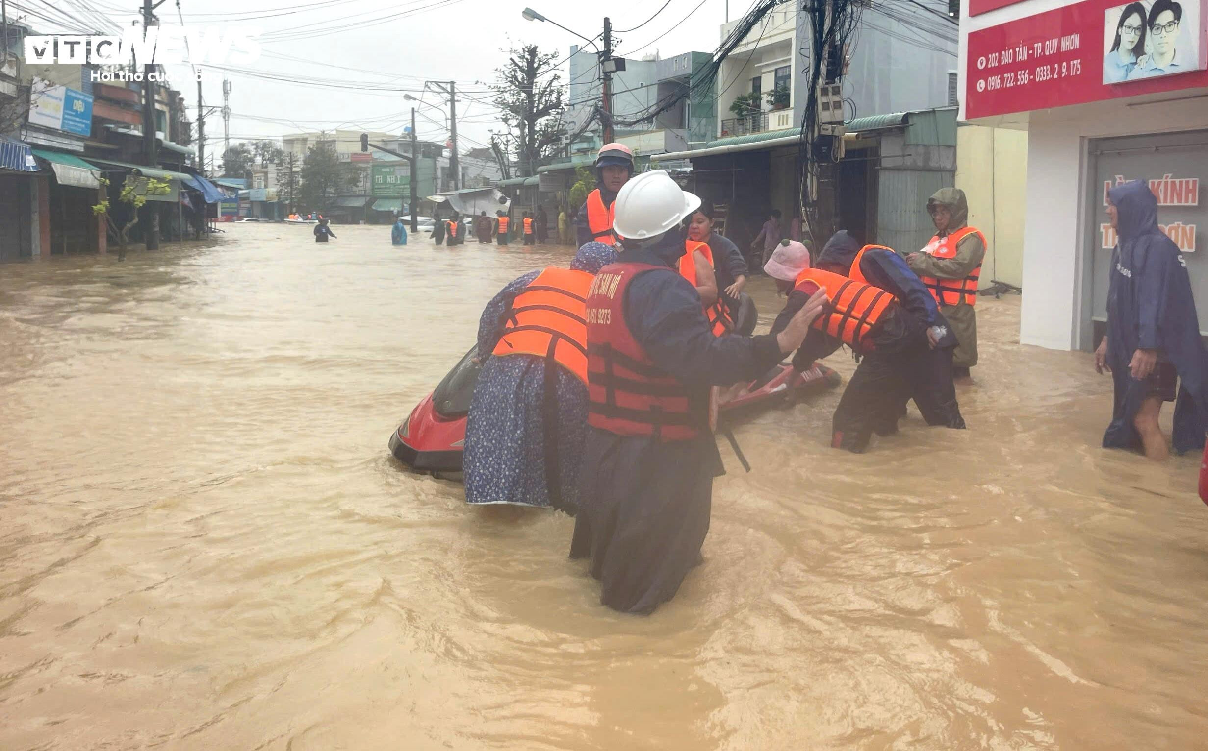 Nước dâng ngập nhà, lực lượng cứu hộ di chuyển người dân, nhất là nhà có trẻ em, người già đến nơi an toàn.