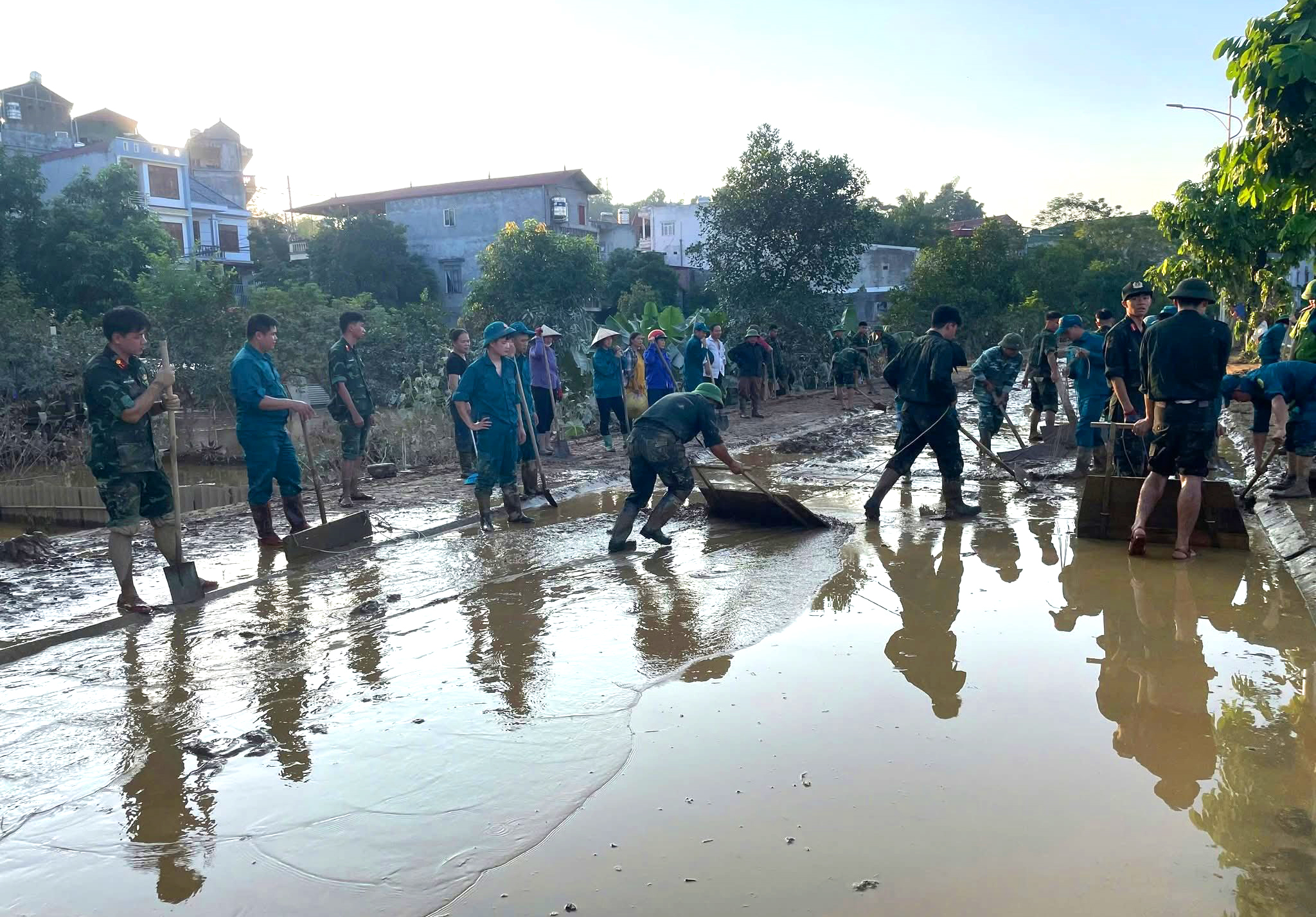 Mồ hôi hòa cùng bùn đất, nhưng ai nấy đều nỗ lực hết mình với quyết tâm khôi phục lại môi trường sạch đẹp, giúp người dân sớm trở lại cuộc sống bình thường