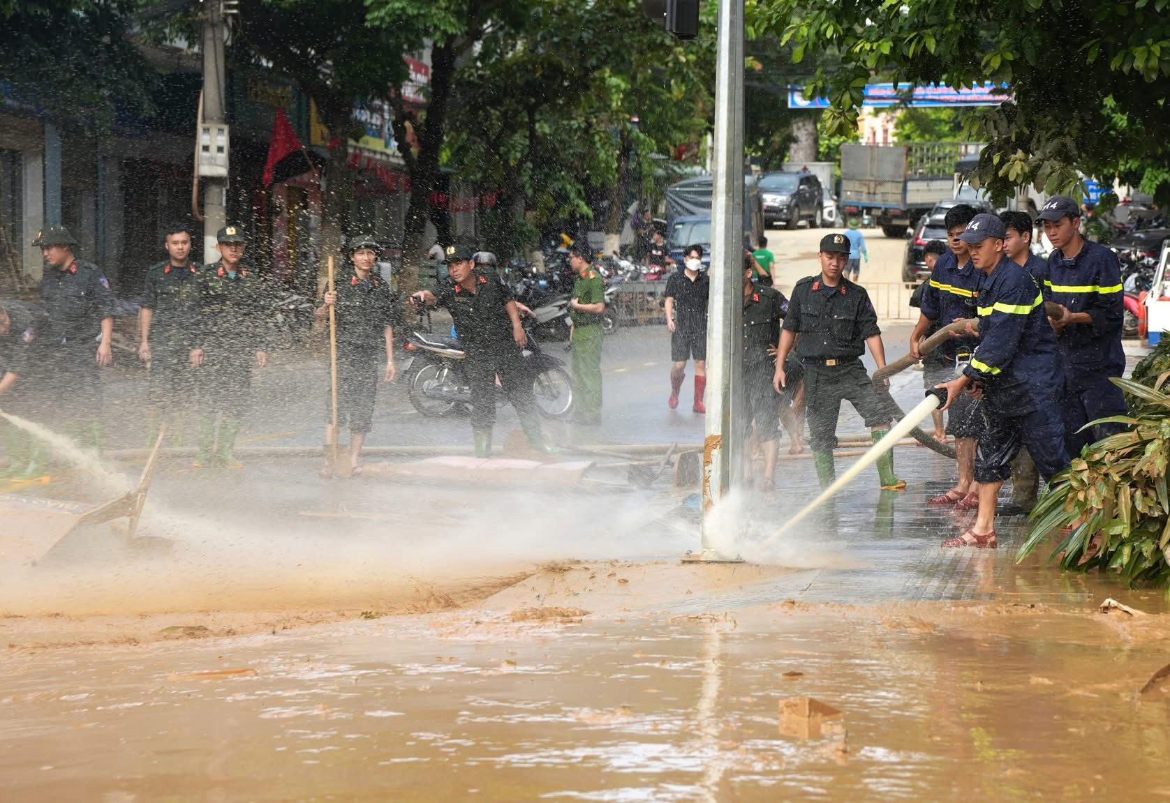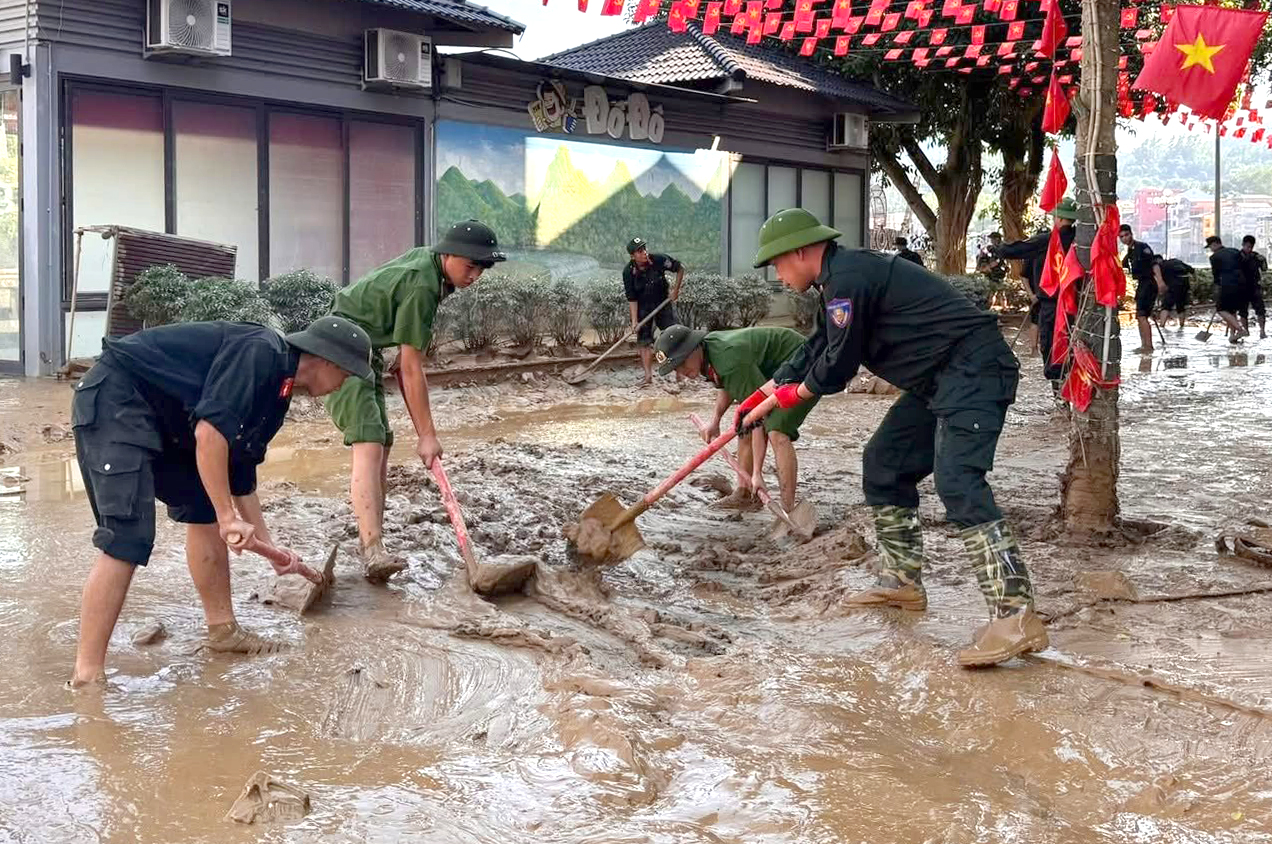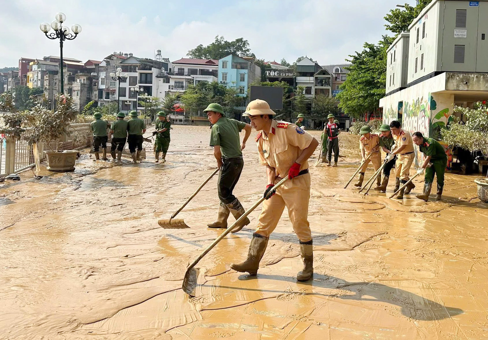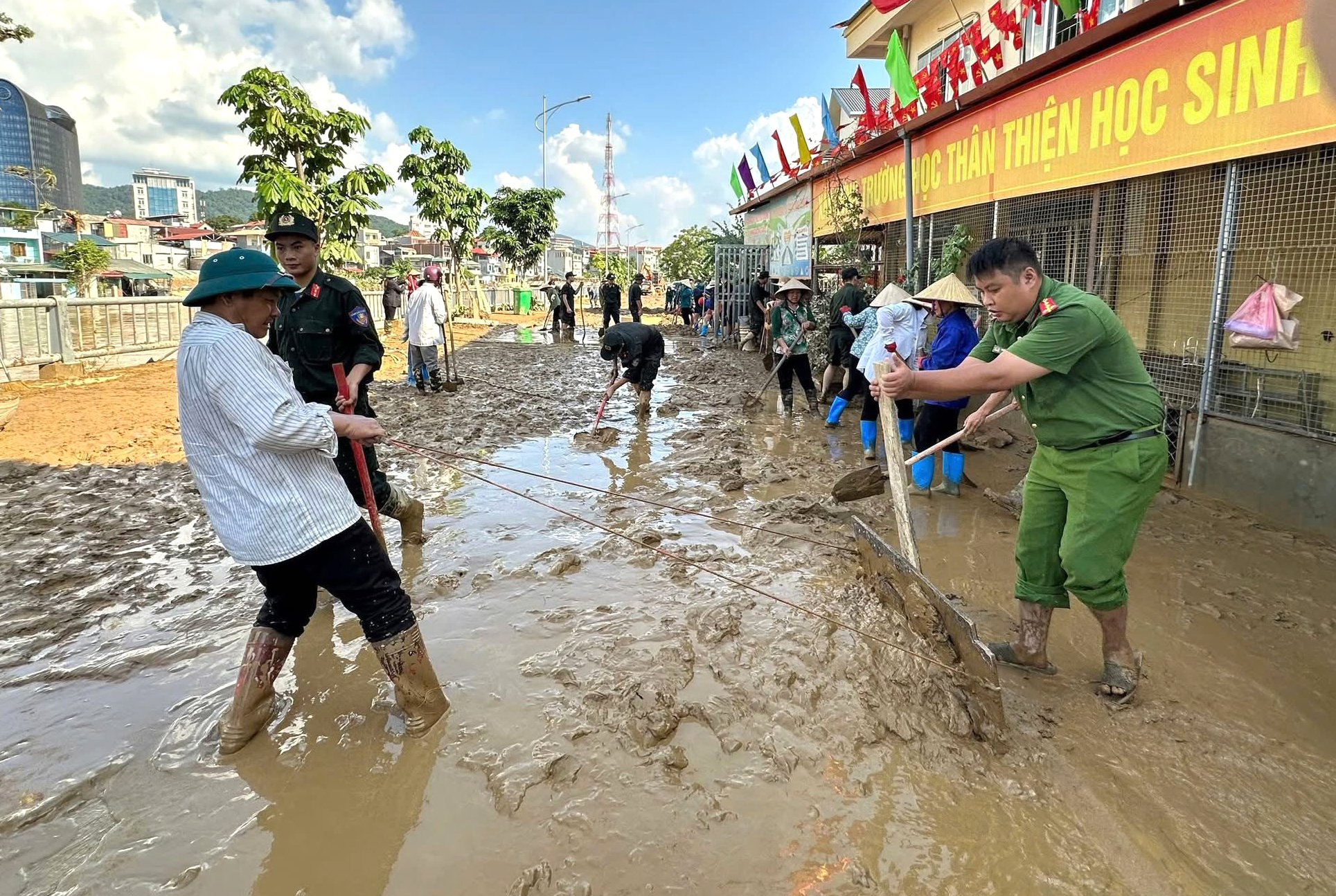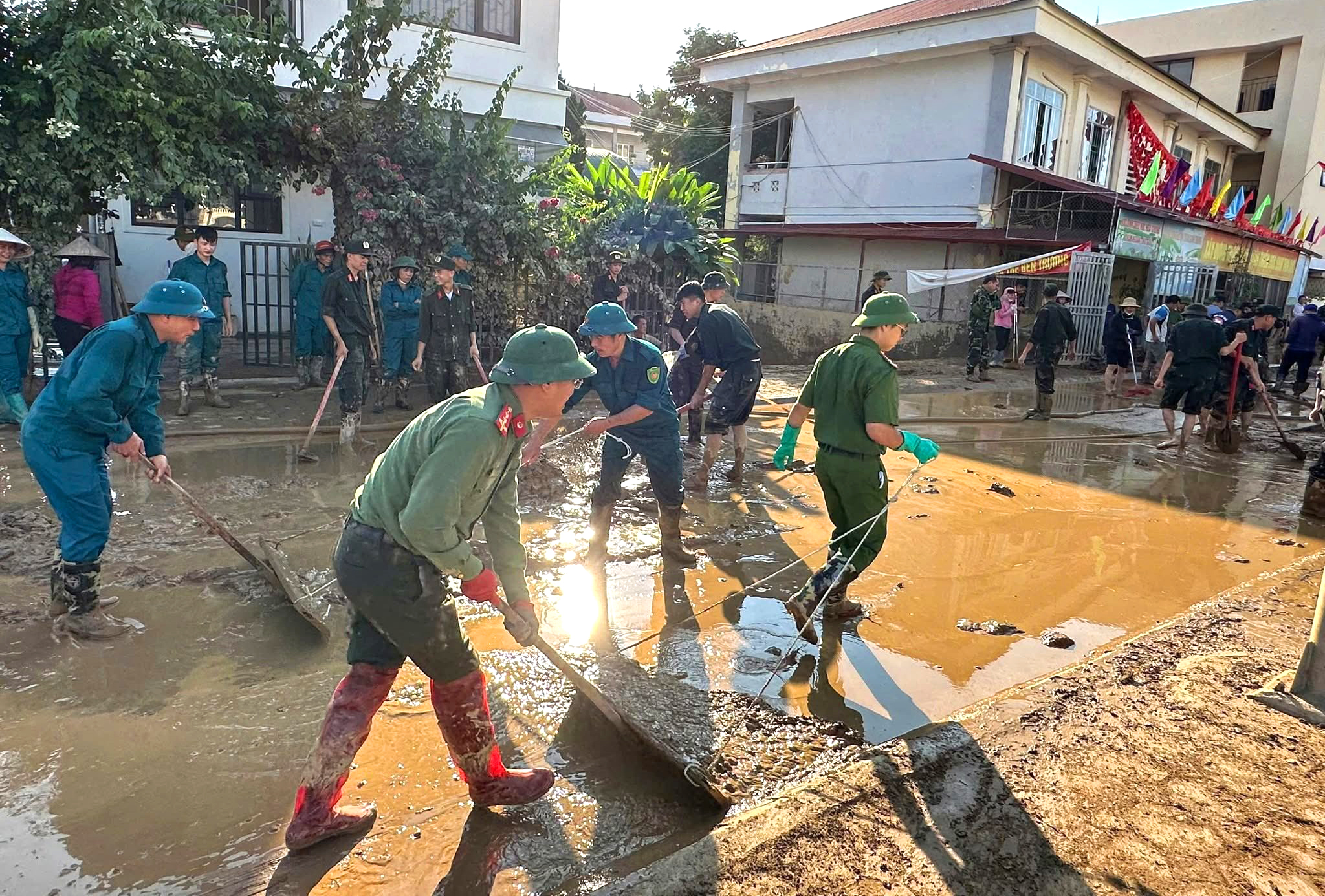 Khi nước rút đi, trận lũ lịch sử để lại hậu quả rất nặng nề, là “biển bùn” dày đặc trên các tuyến đường phố, khu vực công cộng, các cơ quan, trường học và nhà ở của người dân