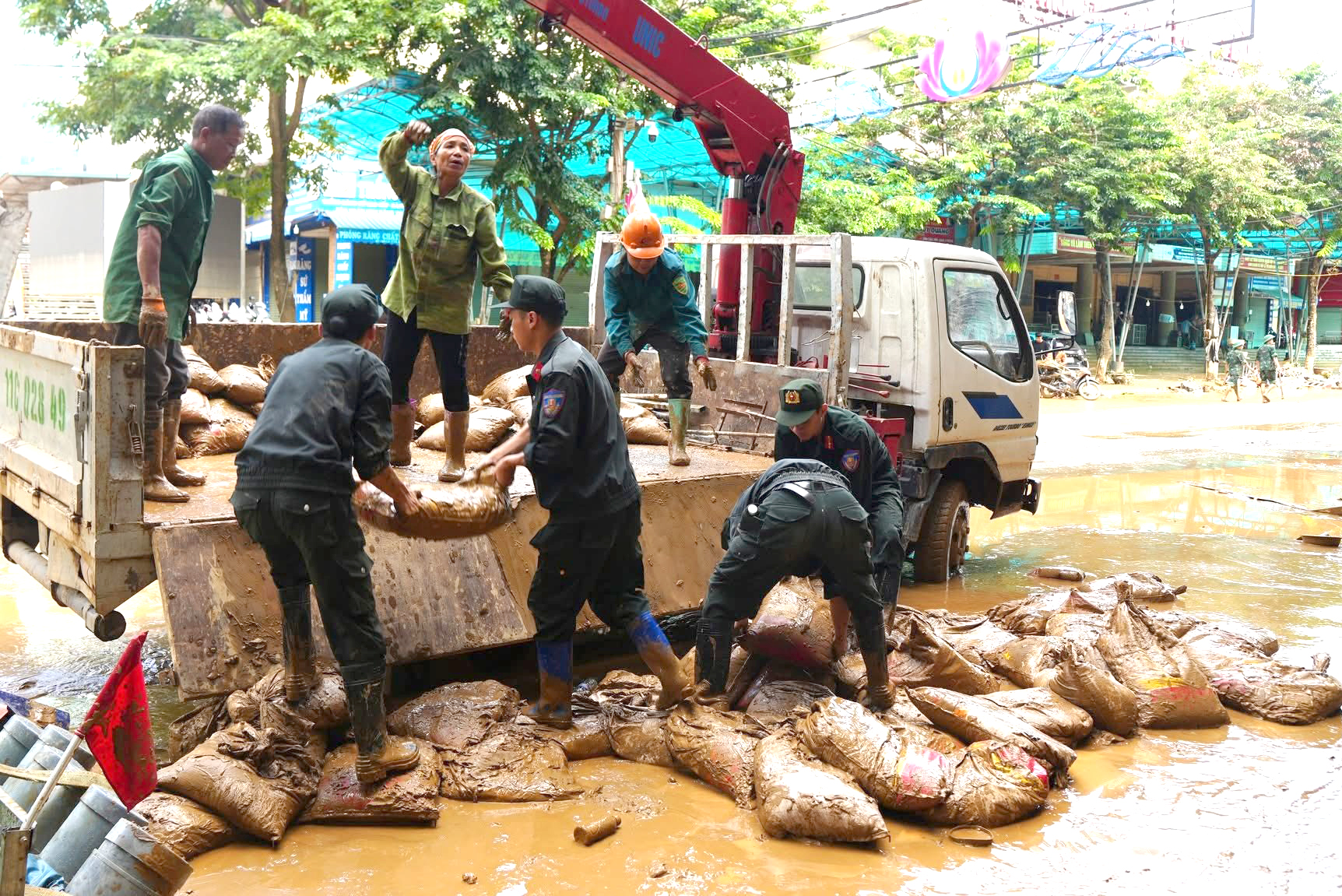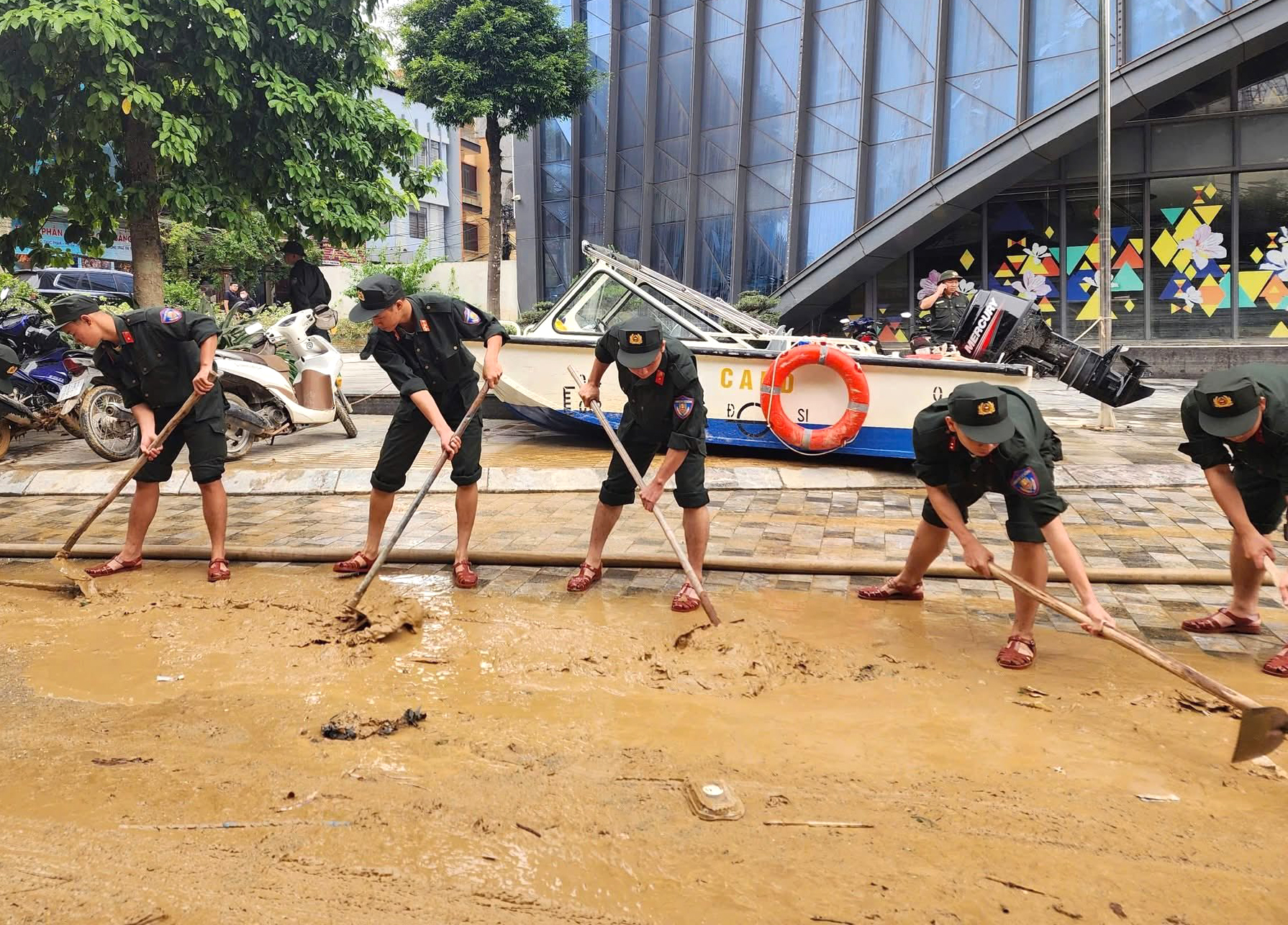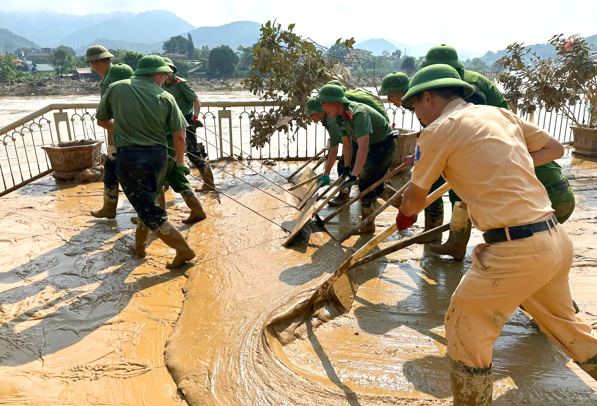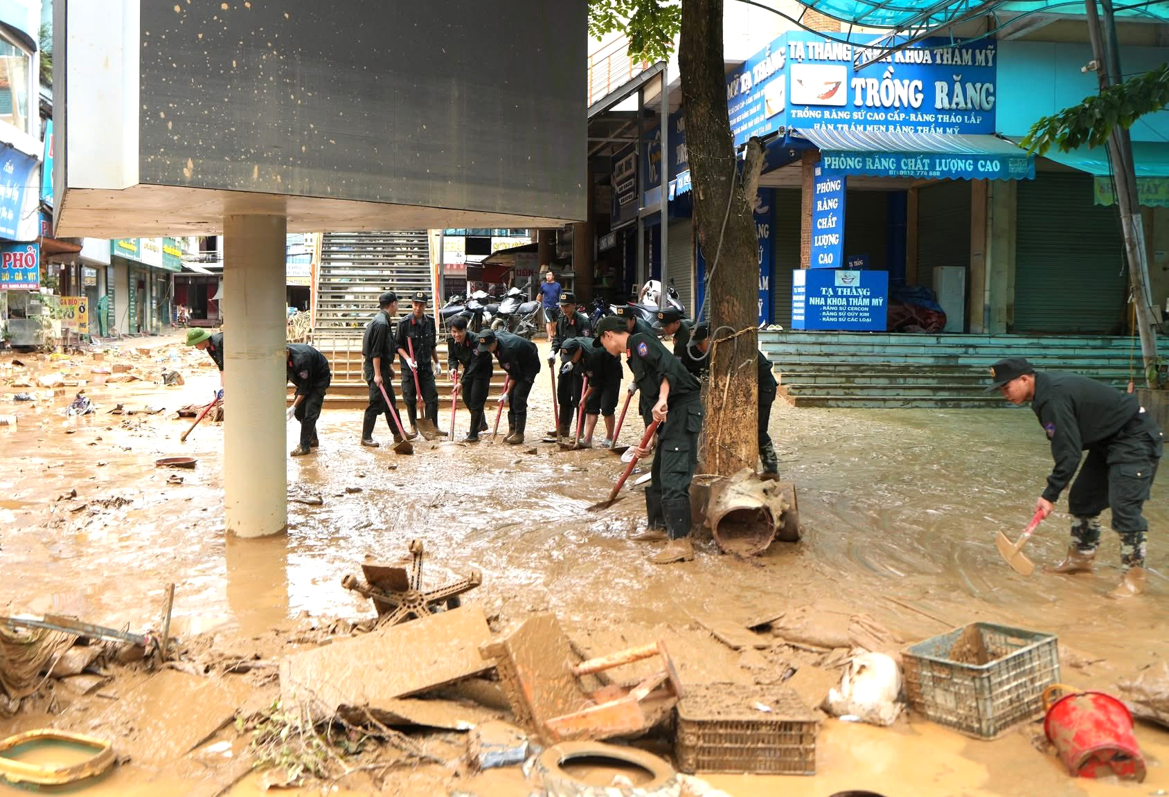 Khi nước rút đi, trận lũ lịch sử để lại hậu quả rất nặng nề, là “biển bùn” dày đặc trên các tuyến đường phố, khu vực công cộng, các cơ quan, trường học và nhà ở của người dân